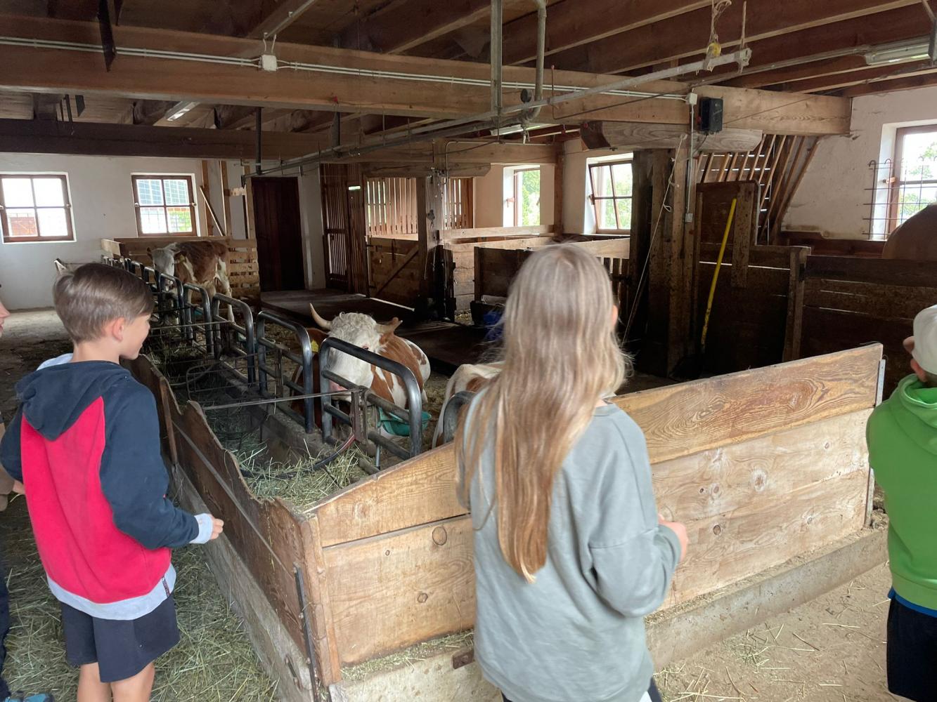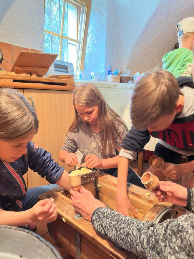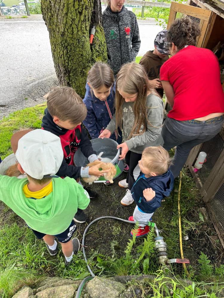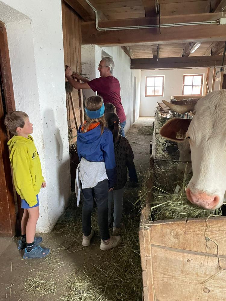 Es wurde selber Butter gemacht, Maschinen erkundet und etwas über den Borkenkäfer gelernt. Nach einer Runde durchs Heulager ging es zu den Kühen, Schweinen, einem Pferd und zu den Hühnern. Babykatzen und Hasen wurden gekuschelt und geknuddelt. Mit einer kleinen Jause klang der Nachmittag dann gemütlich aus.