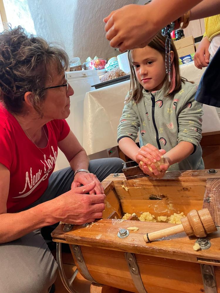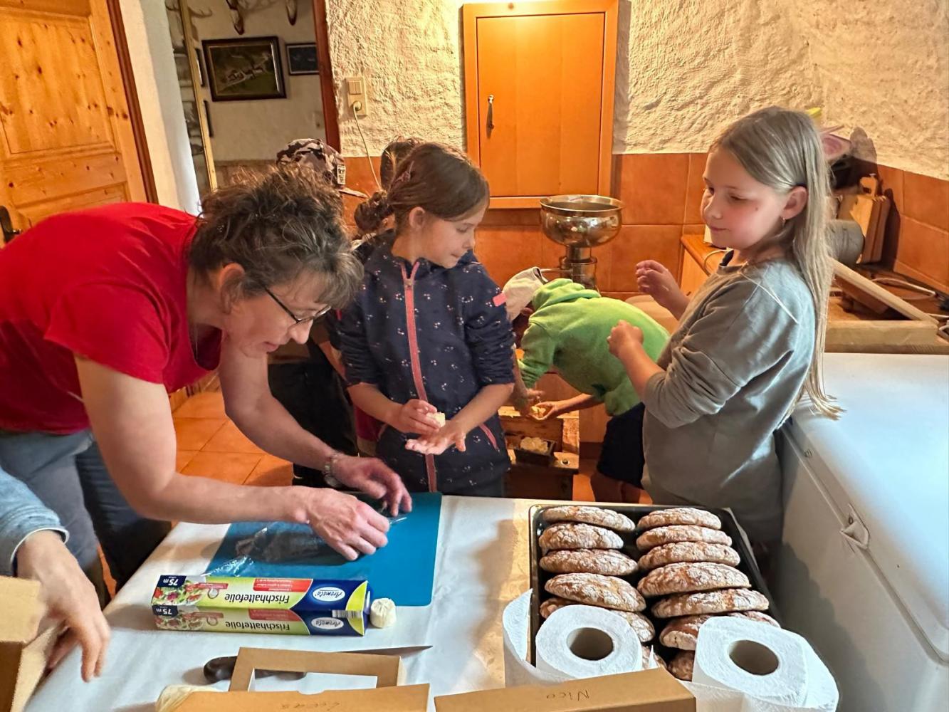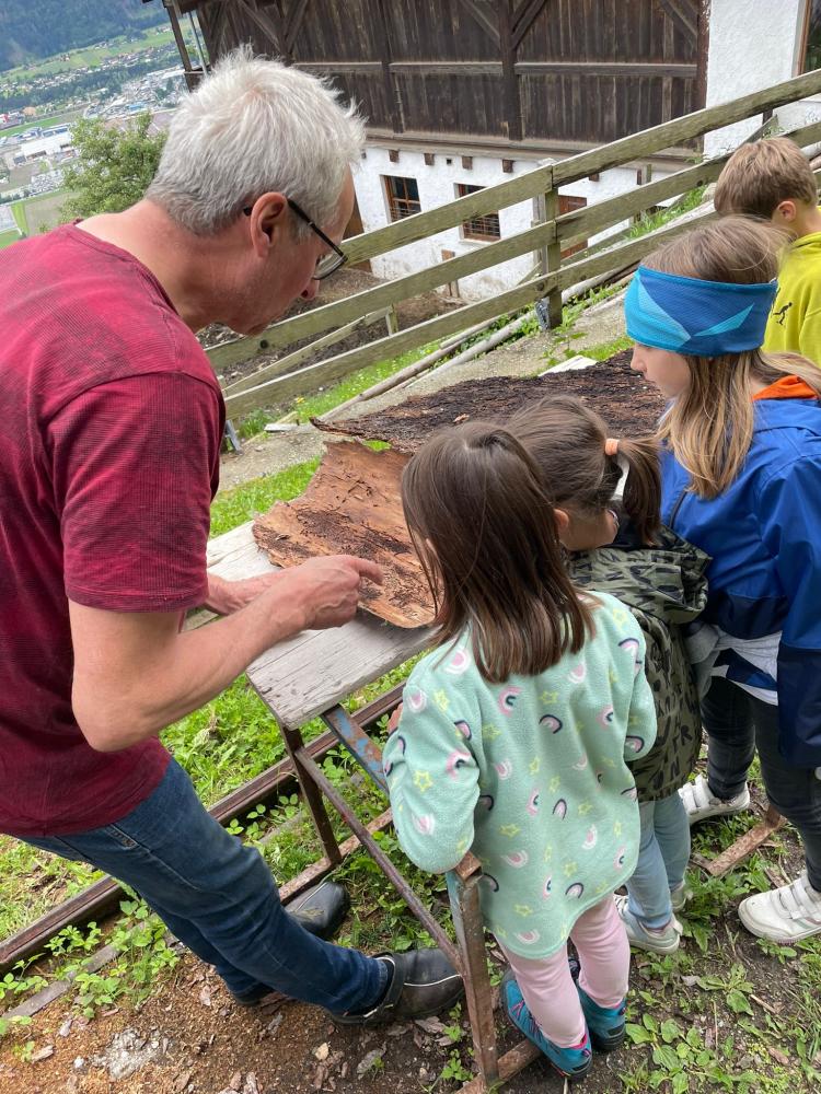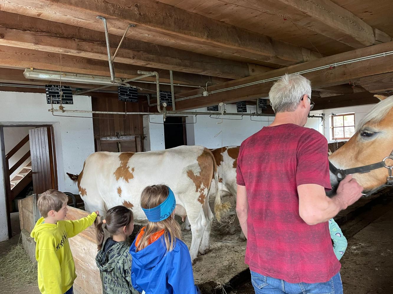 Es wurde selber Butter gemacht, Maschinen erkundet und etwas über den Borkenkäfer gelernt. Nach einer Runde durchs Heulager ging es zu den Kühen, Schweinen, einem Pferd und zu den Hühnern. Babykatzen und Hasen wurden gekuschelt und geknuddelt. Mit einer kleinen Jause klang der Nachmittag dann gemütlich aus.