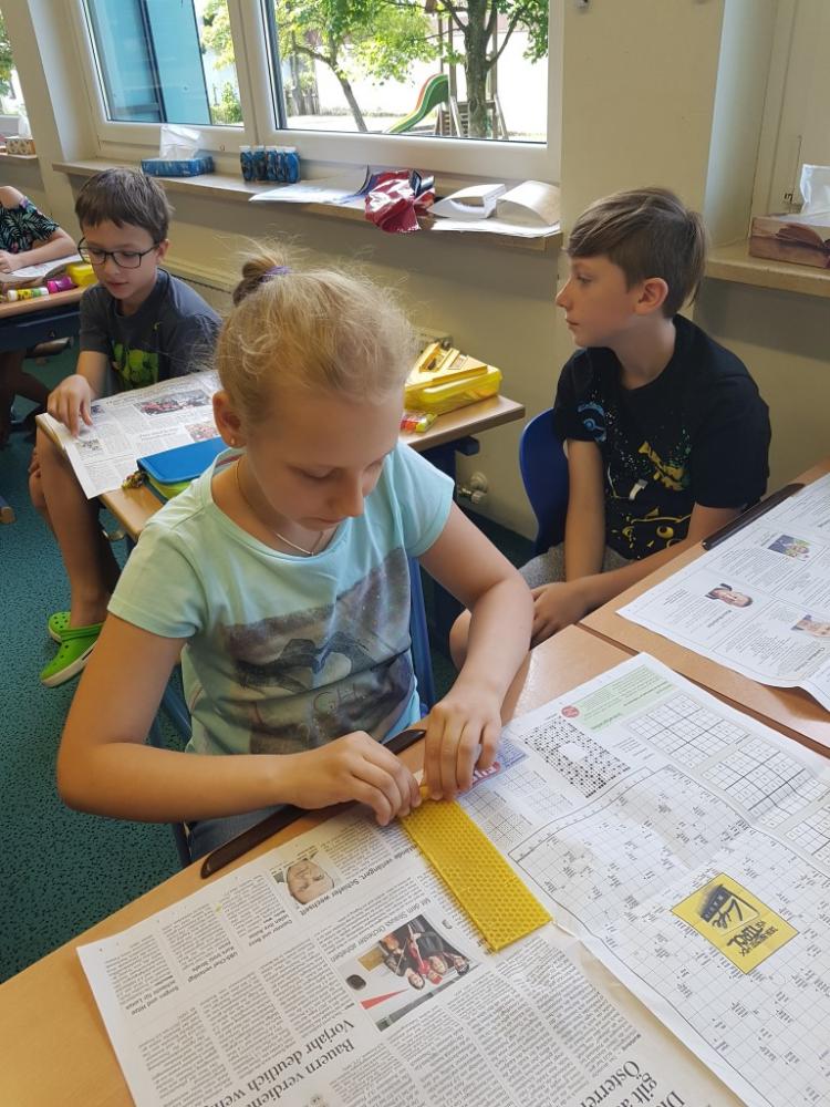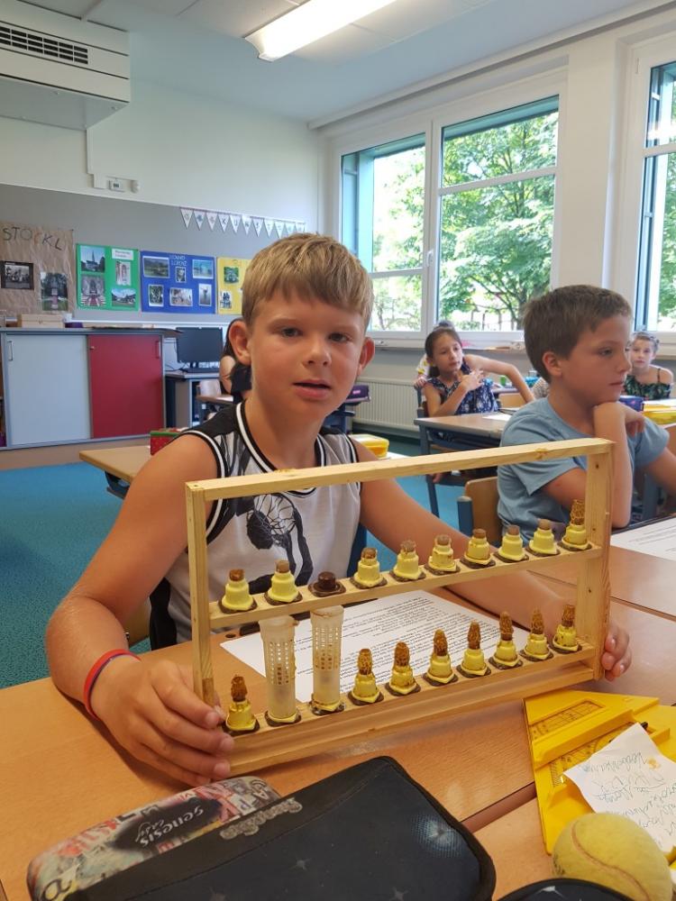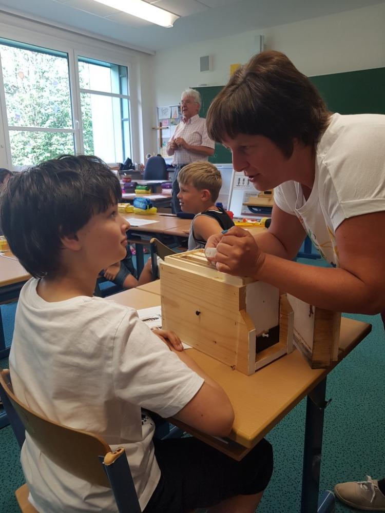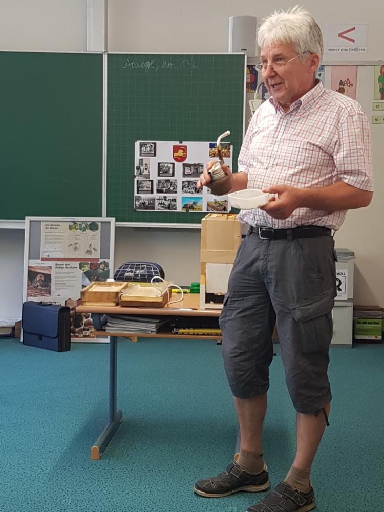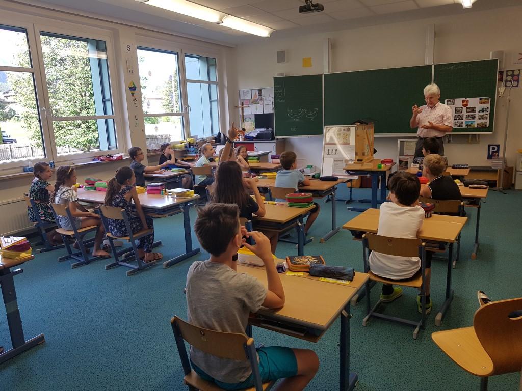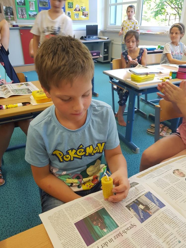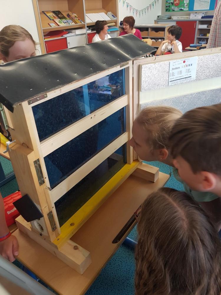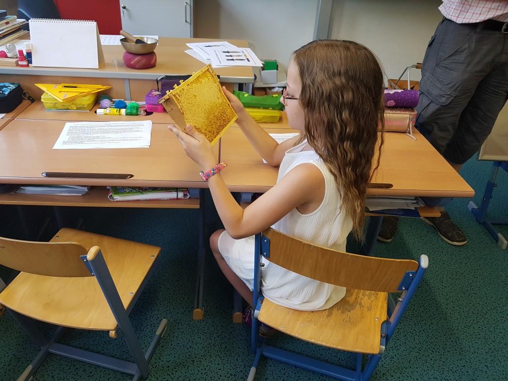Am 17.06.2019 bekamen die Kinder der dritten Klasse Besuch von Liams Opa, Herrn Josef Fritz, der Imker im Pinzgau ist. Er erzählte uns viele interessante Dinge über Wild- und Honigbienen und wir durften eine Menge anfassen und auch ausprobieren. Wir erfuhren, wie man Bienenwaben und den Honig aus den Bienenkästen herausholt. Außerdem erklärte uns Herr Fritz, dass Bienen die Blüten von Bäumen und Pflanzen bestäuben, denn nur so können Früchte und Gemüse wachsen. Darum ist es wichtig, Bienen zu schützen! Im mitgebrachten Bienenschaukasten konnten wir die Bienen dann auch beobachten. Zum Schluss bastelten wir noch eine Kerze aus Bienenwachs und bekamen ein Glas Honig geschenkt. Vielen Dank für diese zwei aufregenden und lehrreichen Schulstunden.