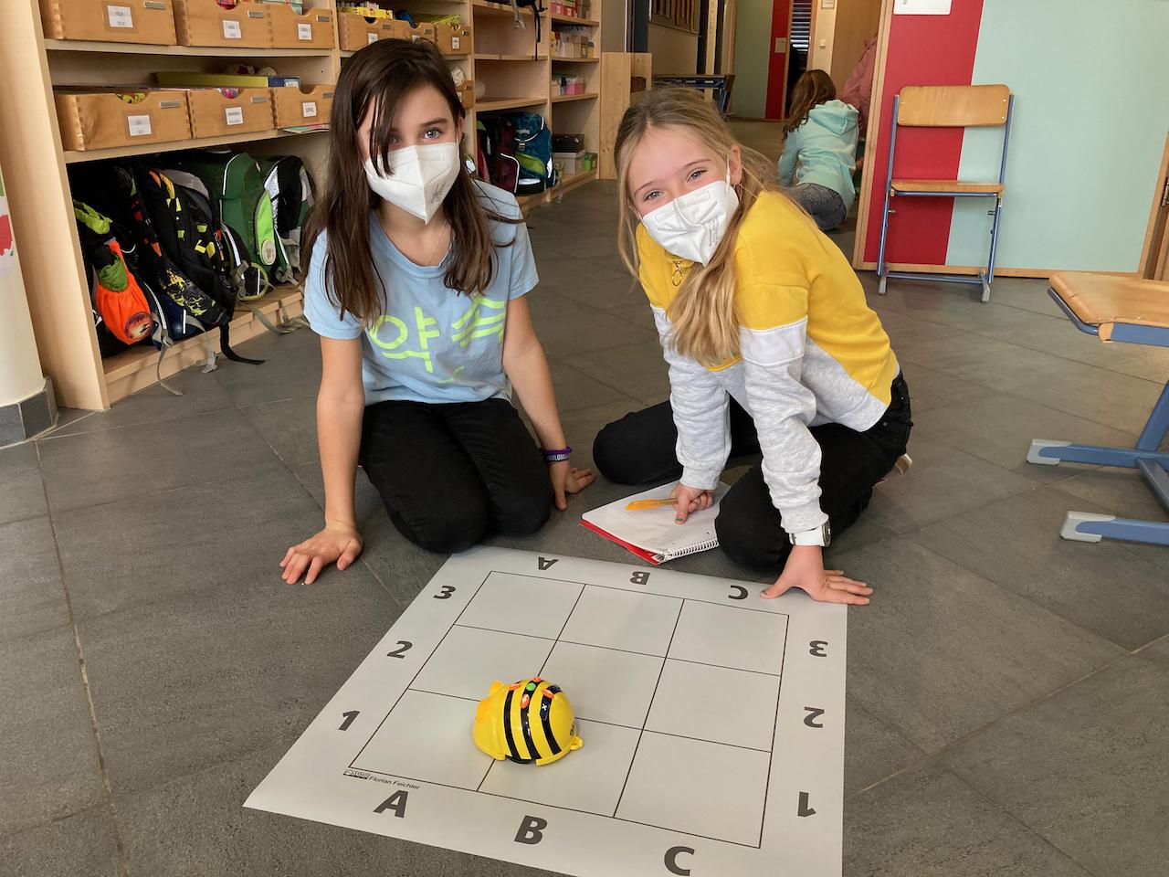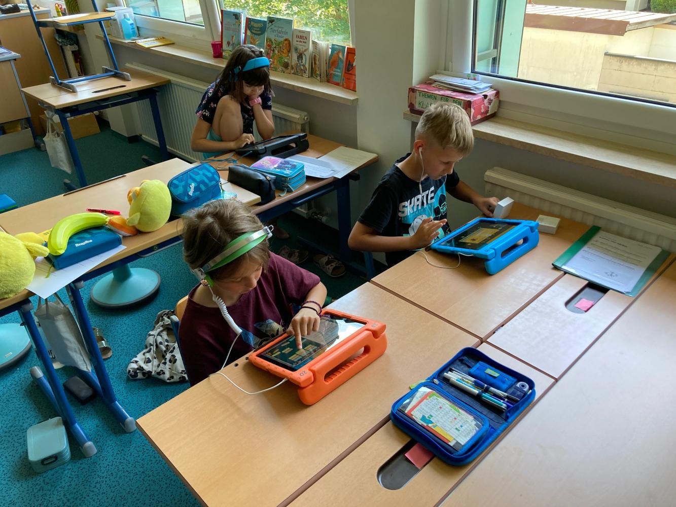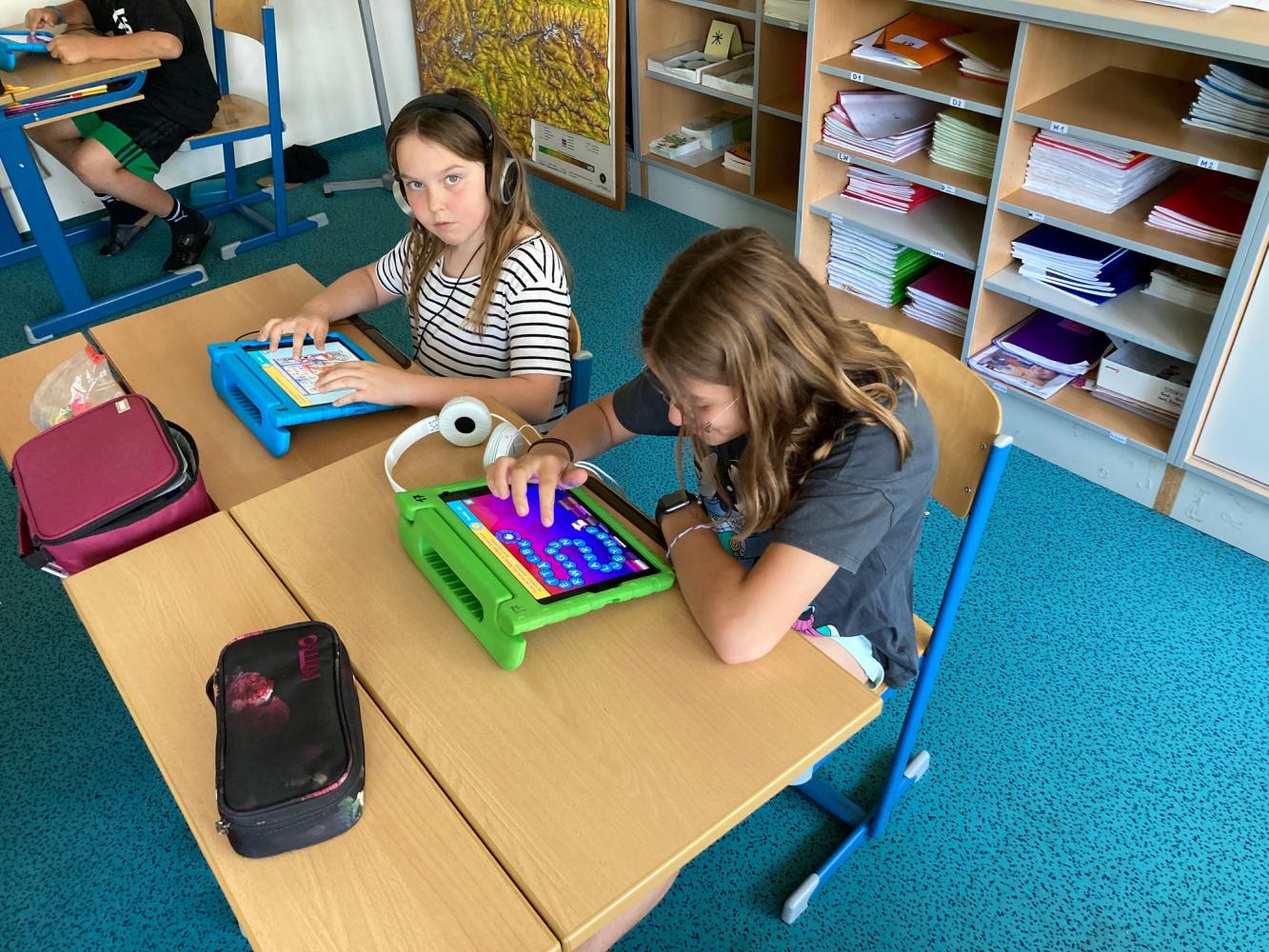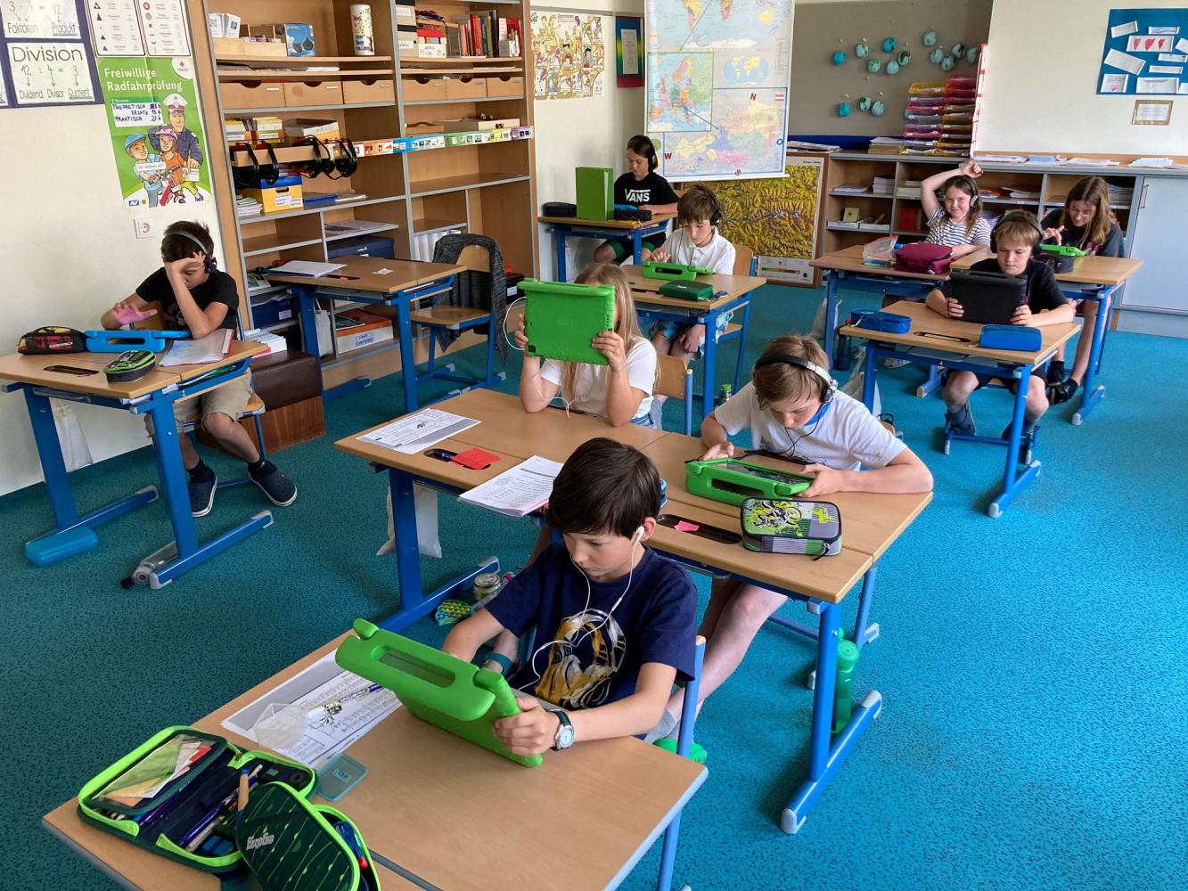 Neben neuen Beamern konnten insgesamt 20 iPads angekauft werden, die nun allen Kindern für den Einsatz im Unterricht zur Verfügung stehen. Dabei liegt der Schwerpunkt auf der digitalen Grundbildung. Darin lernen die Kinder technische Möglichkeiten sinnvoll zu nutzen. BeeBots (kleine direkt programmierbare Roboter) erschließen den Kindern die Welt des Programmierens (Coding) ,das schon viel Spaß und Abwechslung bereitete.