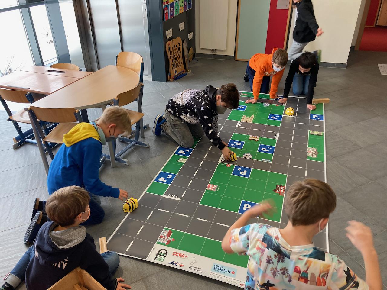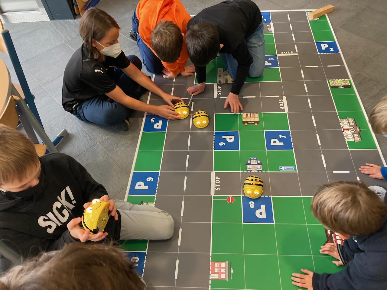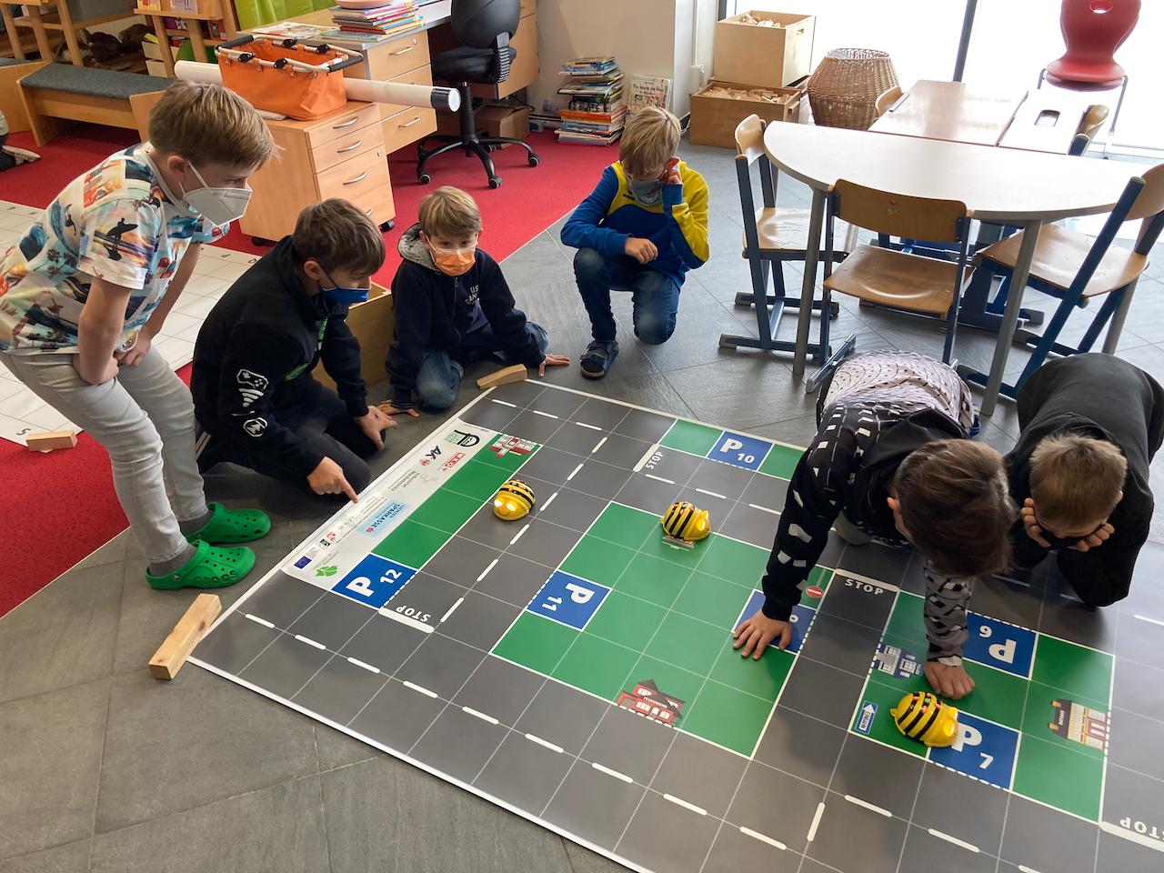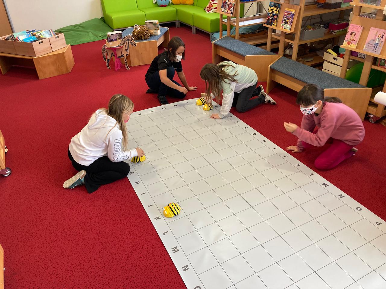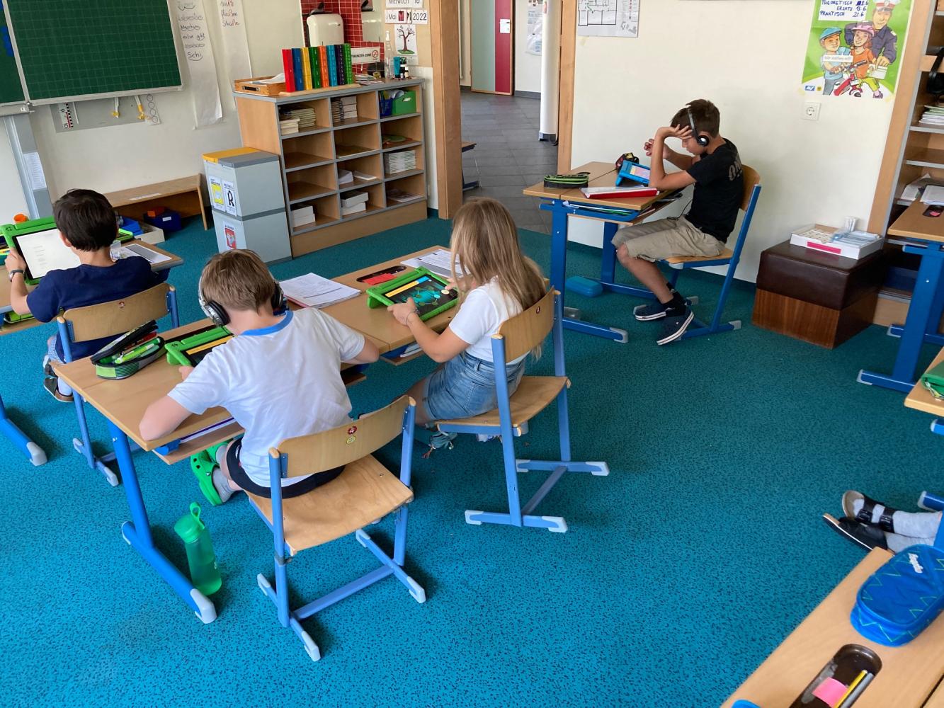 Neben neuen Beamern konnten insgesamt 20 iPads angekauft werden, die nun allen Kindern für den Einsatz im Unterricht zur Verfügung stehen. Dabei liegt der Schwerpunkt auf der digitalen Grundbildung. Darin lernen die Kinder technische Möglichkeiten sinnvoll zu nutzen. BeeBots (kleine direkt programmierbare Roboter) erschließen den Kindern die Welt des Programmierens (Coding) ,das schon viel Spaß und Abwechslung bereitete.