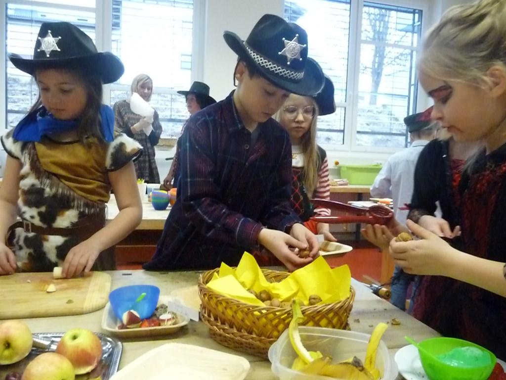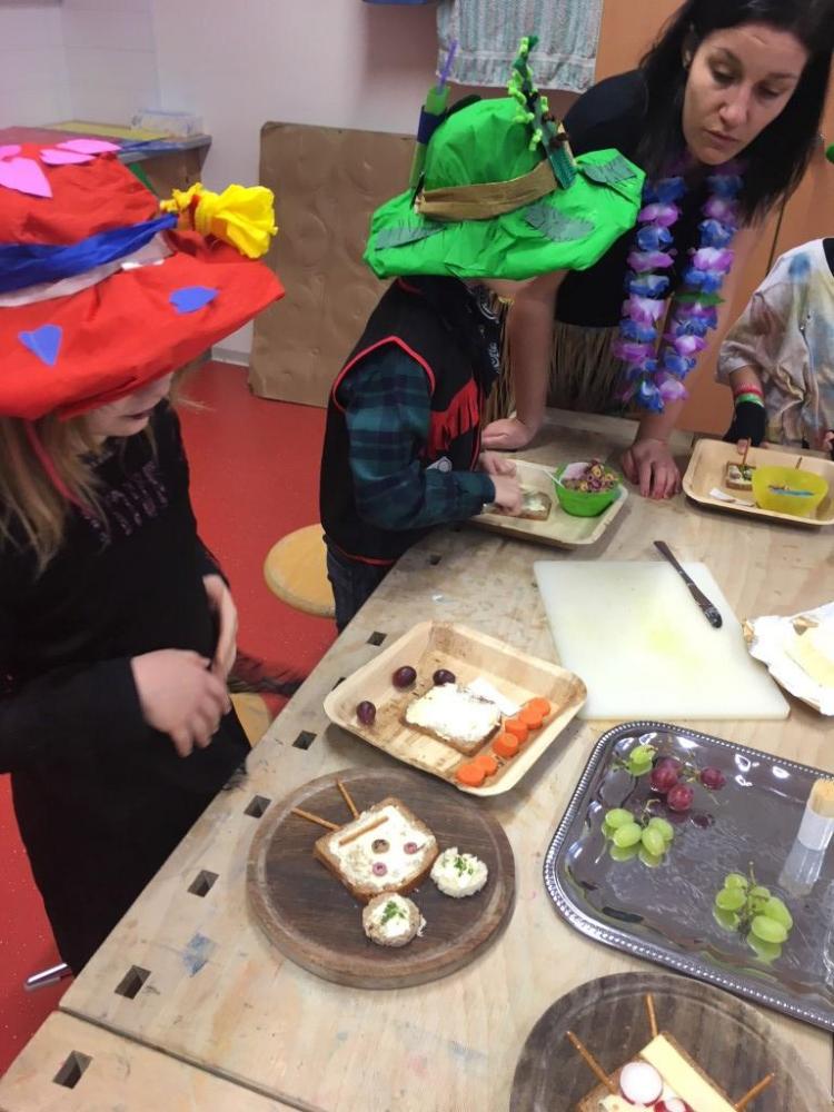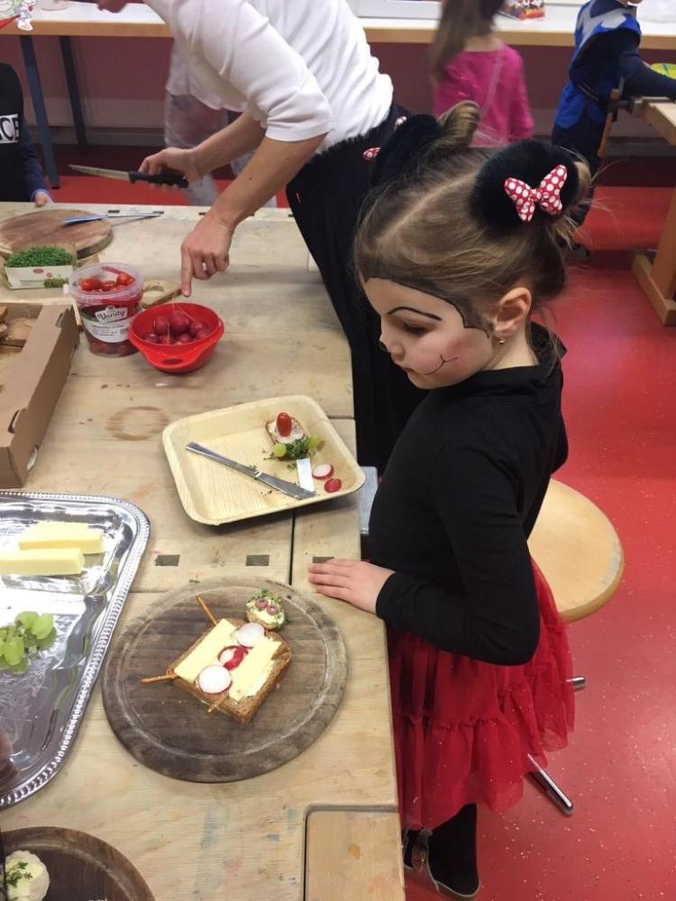 Am Faschingsdienstag durften die Kinder verkleidet in die Schule kommen. Die Eltern bereiteten zusammen mit den Kindern eine gesunde Jause zu. Jedes Kind konnte sich seine Jause selbst zusammenstellen und gestalten. In der Pause konnte der Augenschmaus genüsslich verzehrt werden. Eine Polonaise durch das ganze Schulhaus und ein paar Tanzeinlagen im Turnsaal rundeten das Programm ab.