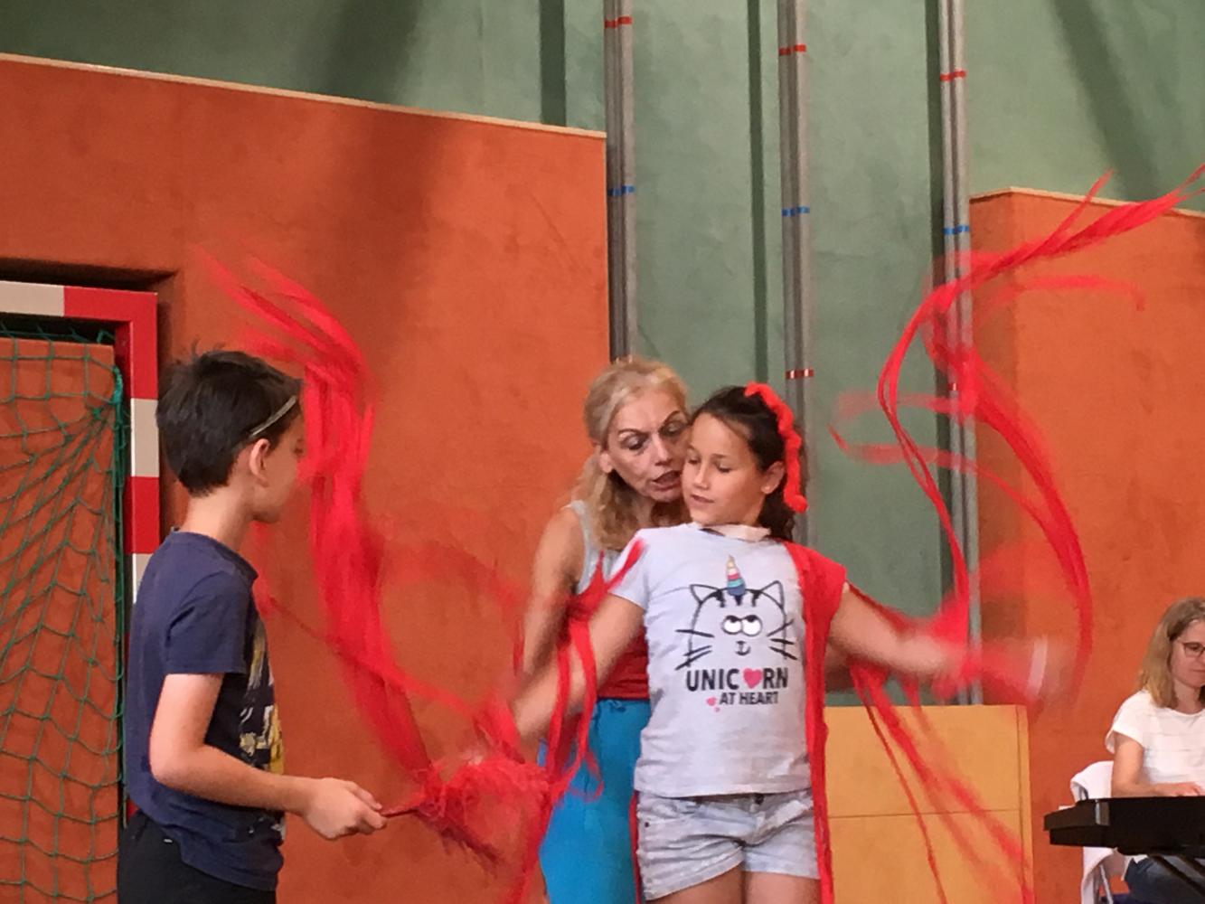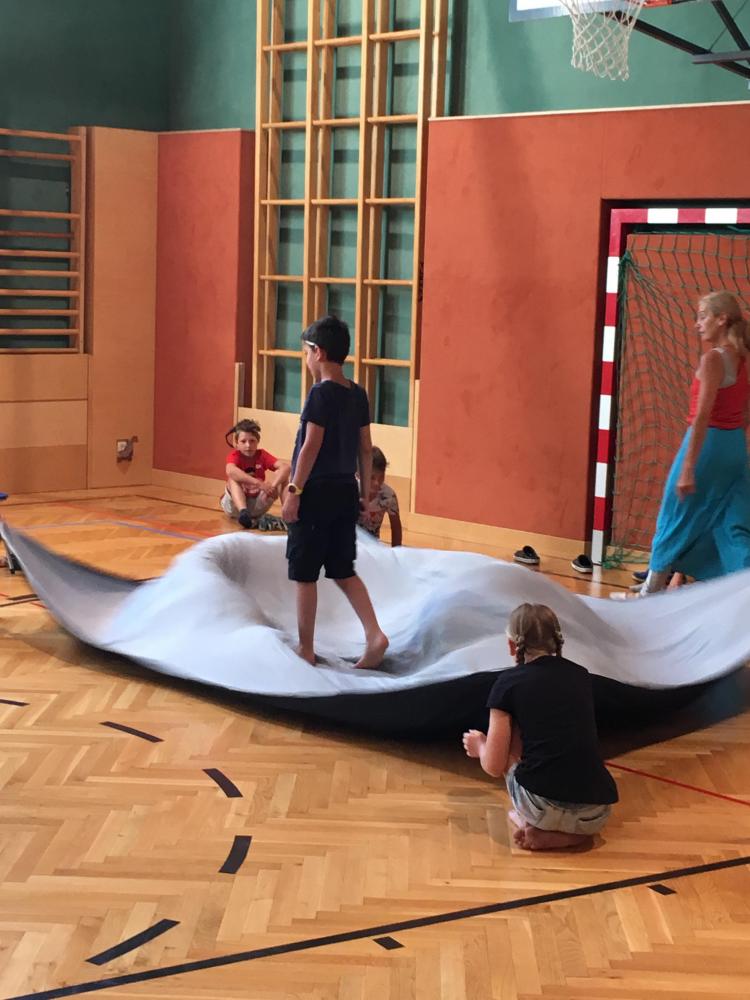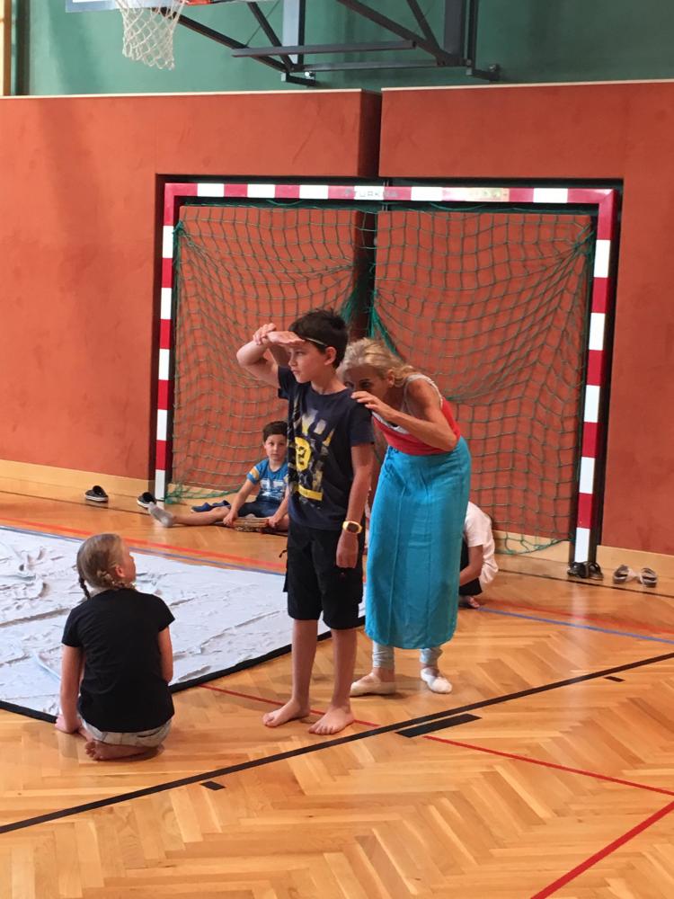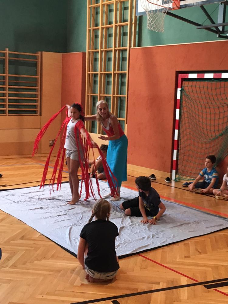 Eine Balletttänzerin und Schauspielerin hat das ganze Stück mit den Kindern spontan erzählt und umgesetzt. Unterstützt wurde dieses Projekt wieder vom Tiroler Kulturservice.