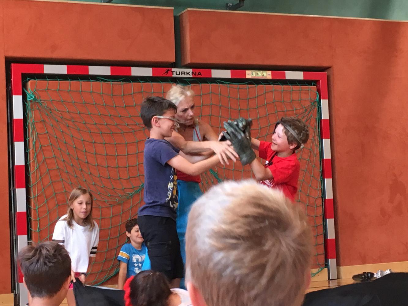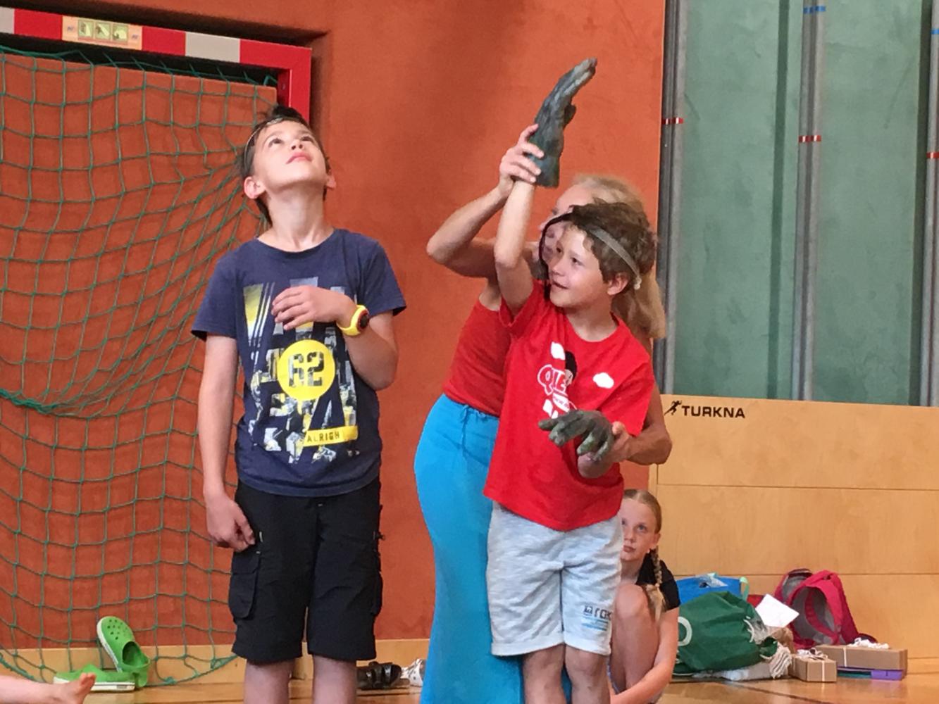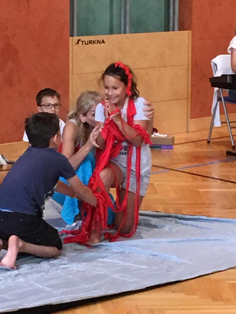 Eine Balletttänzerin und Schauspielerin hat das ganze Stück mit den Kindern spontan erzählt und umgesetzt. Unterstützt wurde dieses Projekt wieder vom Tiroler Kulturservice.