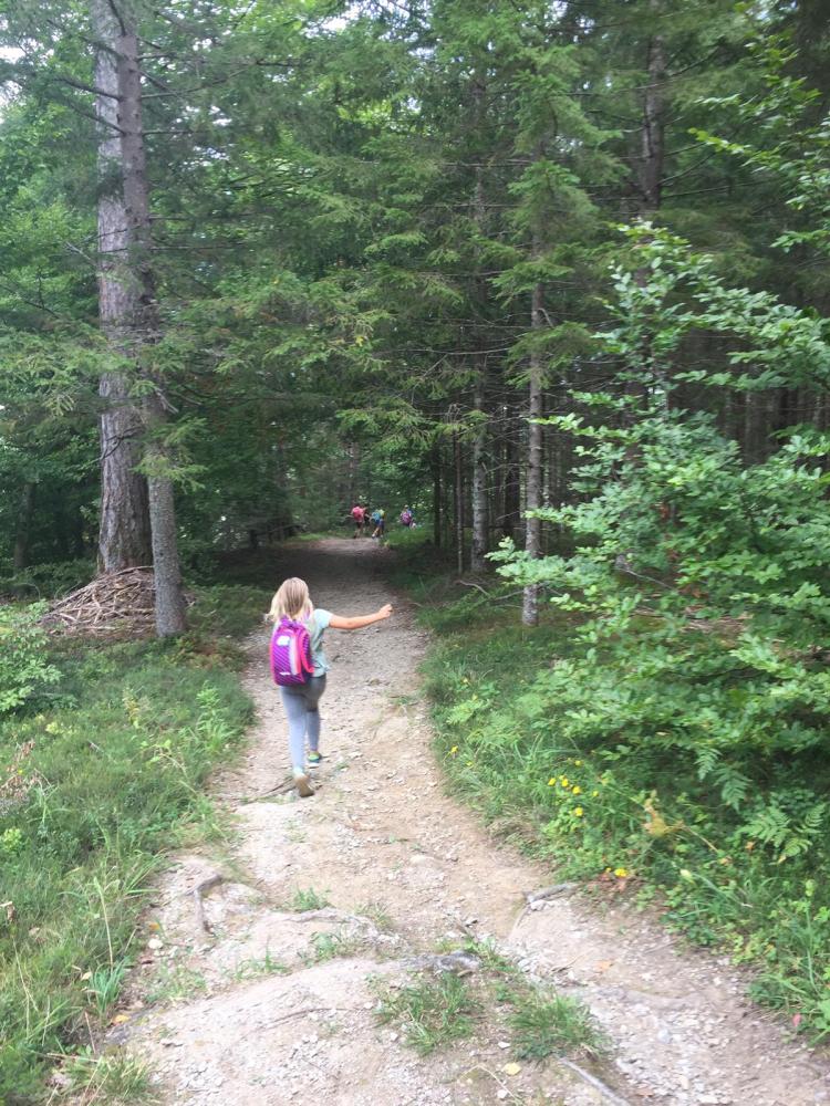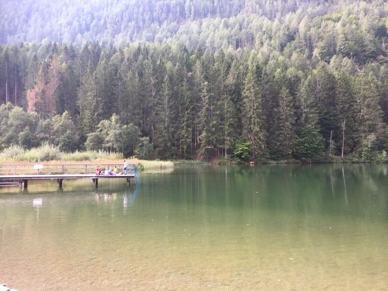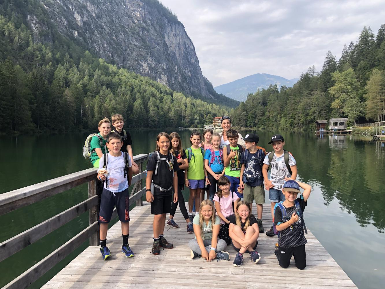 Vom Startpunkt Volksschule spazierten alle den Waldweg entlang nach Bad Jungbrunn. Von dort ging es weiter, einen schmalen Steig hinauf zum Tristacher See. Dort wurde gejausnet, Enten beobachtet, ein hineingefallener Schuh herausgefischt und schließlich am Volleyballplatz Völkerball gespielt. Der Abstieg erfolgte über einen steilen Steig, der in die Seebachstraße mündete. Im Flachland wieder angekommen schlenderten alle gemütlich zurück zur Volksschule.