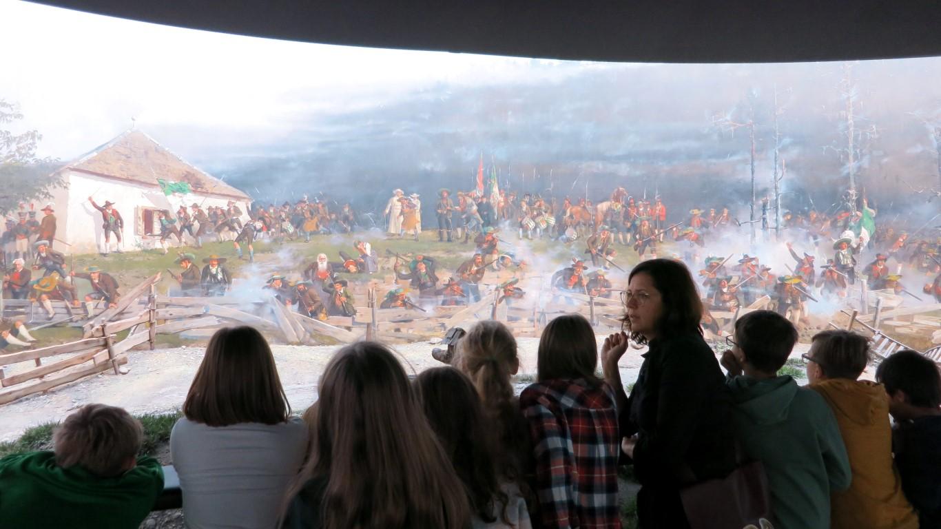 Am Freitag, den 18. Oktober ging es, gestärkt nach einem guten Frühstück, zur Glockengießerei Grassmayer. Dort erklärte uns Uta, wie eine Glocke entsteht. Ein Schlag auf die Wunschglocke, sollte uns einen geheimen Wunsch erfüllen. Auf unserem Tagesplan stand jetzt das Panorama am Bergisel. Im Rundgemälde sahen wir ein beeindruckendes Bild der dritten Schlacht am Bergisel (1809) mit dem Freiheitskämpfer Andreas Hofer. Nach einem leckeren Mittagessen fuhren wir dann endlich mit der Hungerburgbahn in den Alpenzoo. Oben angekommen durften wir in kleinen Gruppen durch den Zoo gehen und die vielen heimischen Tiere beobachten.