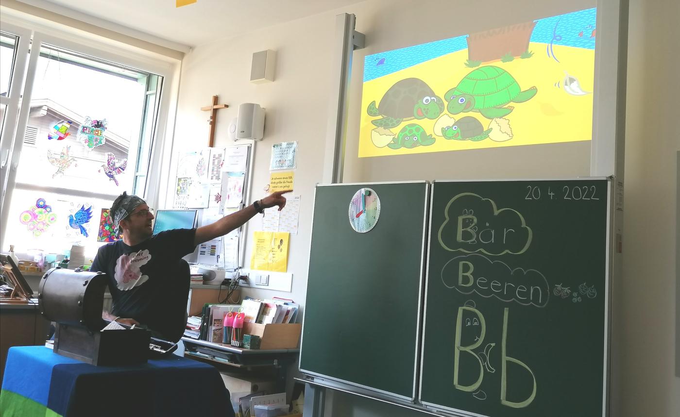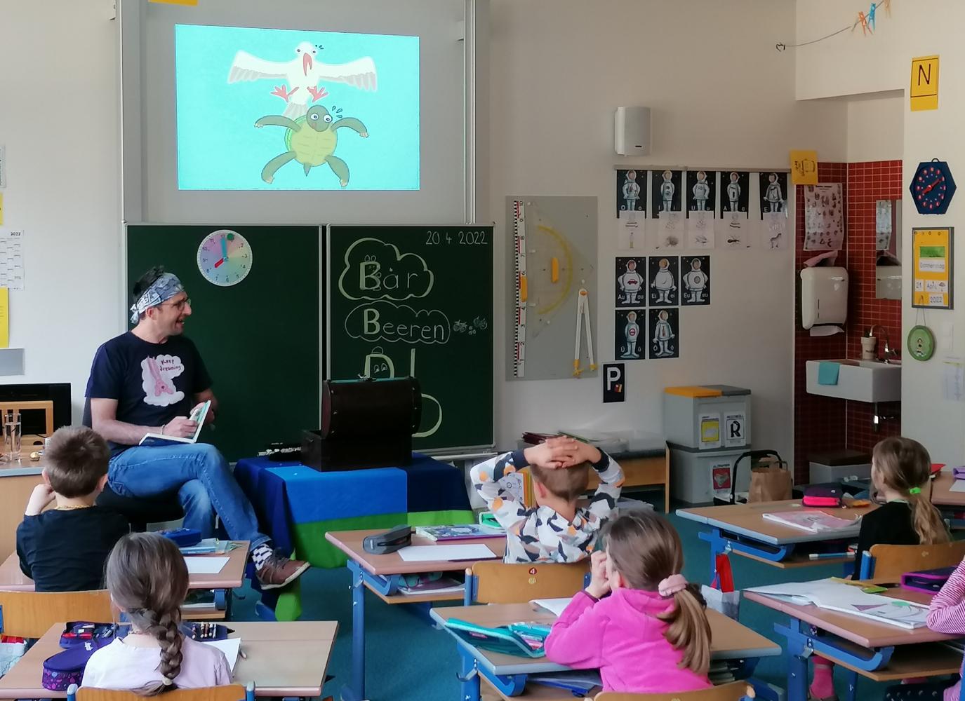 Kinderbuchautor Johannes Mahlknecht von Norbert Salcher 22. April 2022 4 2024/2025 4. Klasse 2022/2023 Der Kinderbuchautor, Illustrator und Kabarettist Johannes Mahlknecht präsentierte sein Kinderbuch "Schildkröten!!" auf abwechslungsreiche Weise in Form einer tollen Multimediashow.