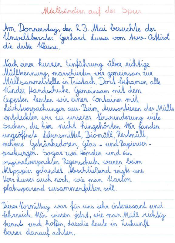 Müllsammelstelle 28. Mai 2019 4 2019/2020 2018/19 Die dritte Klasse hat am 23. Mai die Abfallsammelstelle der Gemeinde am Bauhof nochmals genauer unter die Lupe genommen und ihre Wahrnehmungen verschriftlicht.