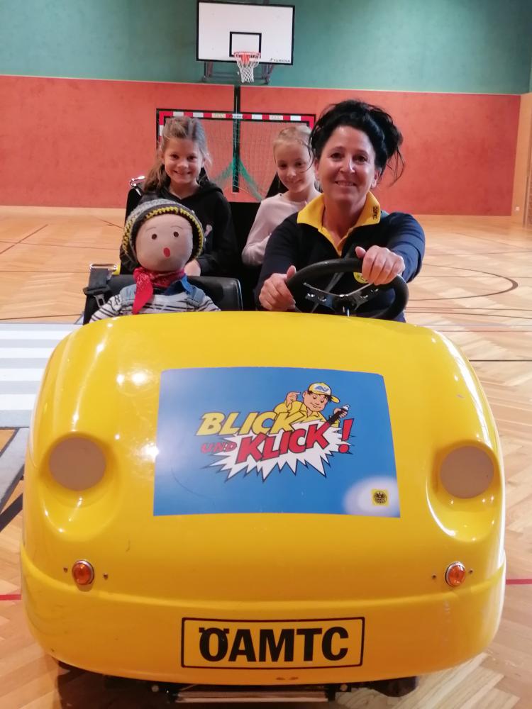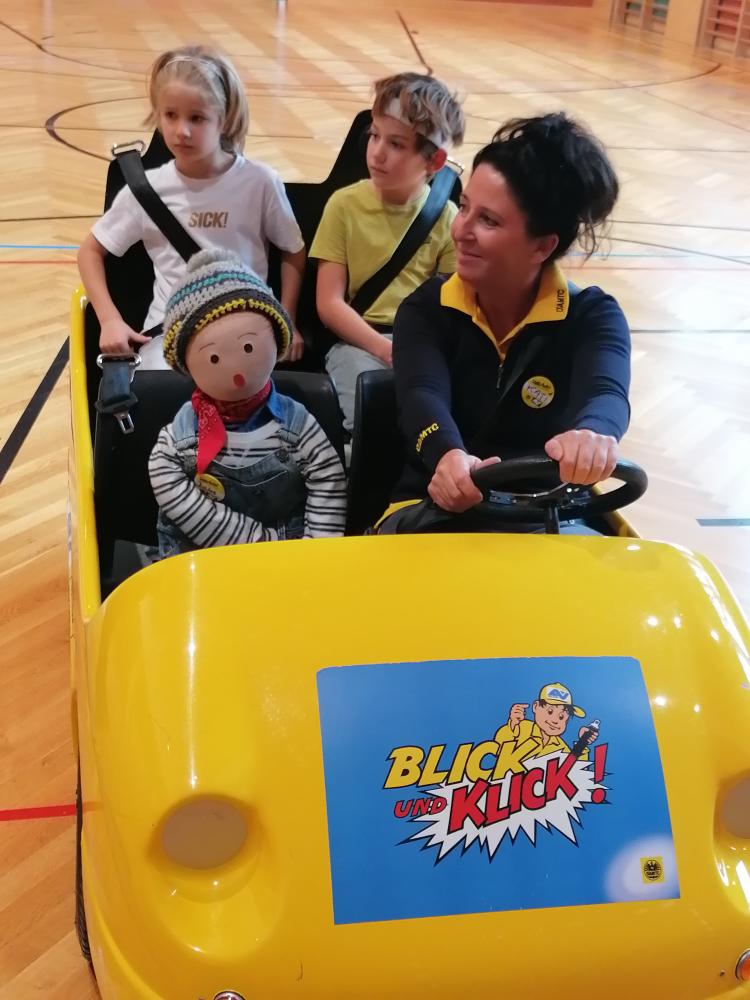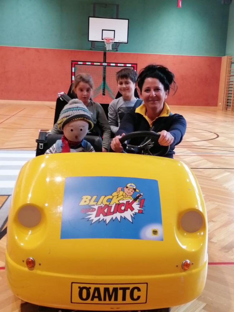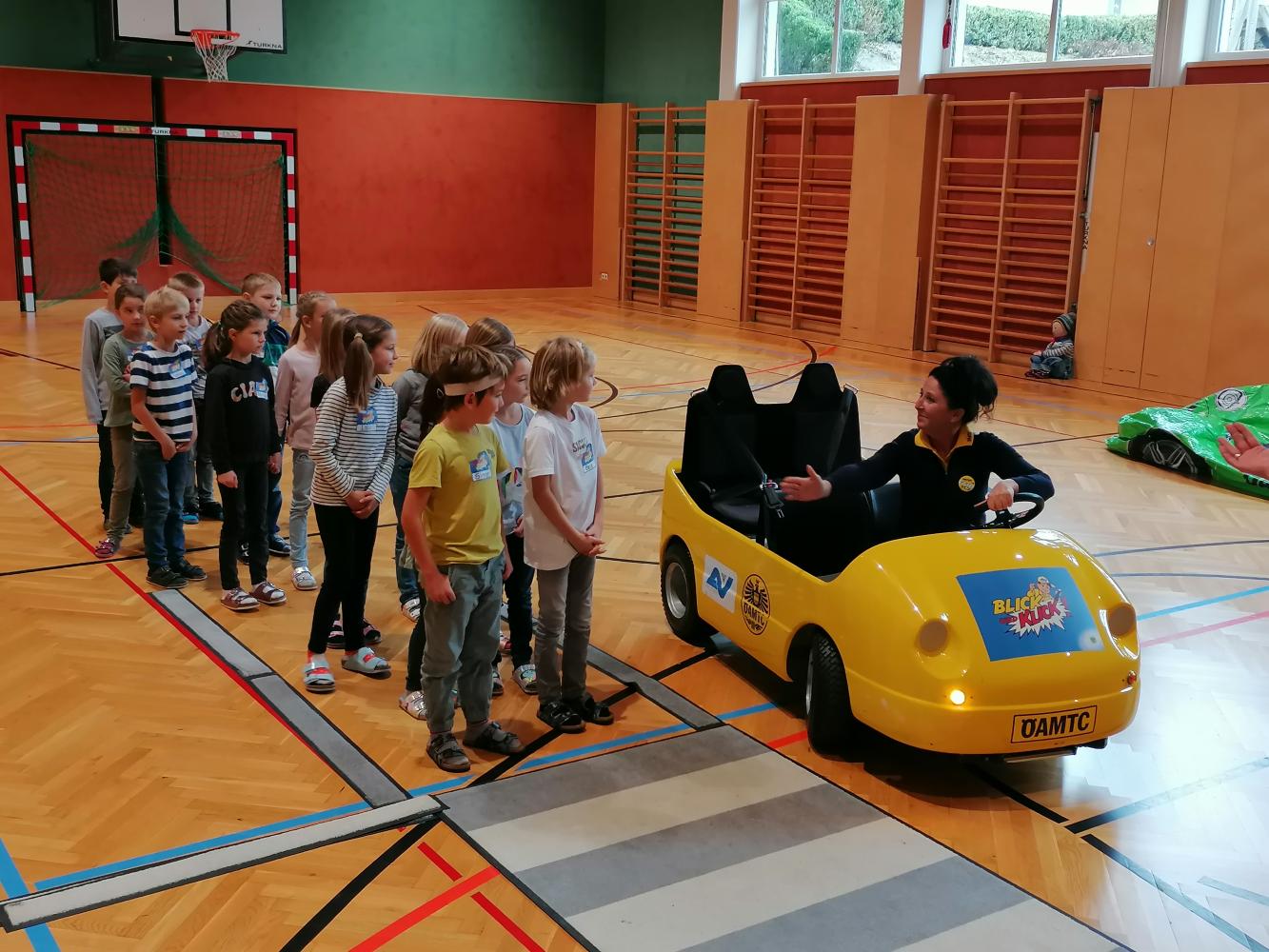 ÖAMTC Blick & Klick von Norbert Salcher 11. November 2022 1. Klasse 2. Klasse In einem eigens dafür konstruierten Elektroauto wurden verschiedene Verkehrssituationen leicht und gefahrlos nachgestellt. Wichtig dabei: Die Kinder konnten selbst mitmachen.ÖAMTC Blick & Klick