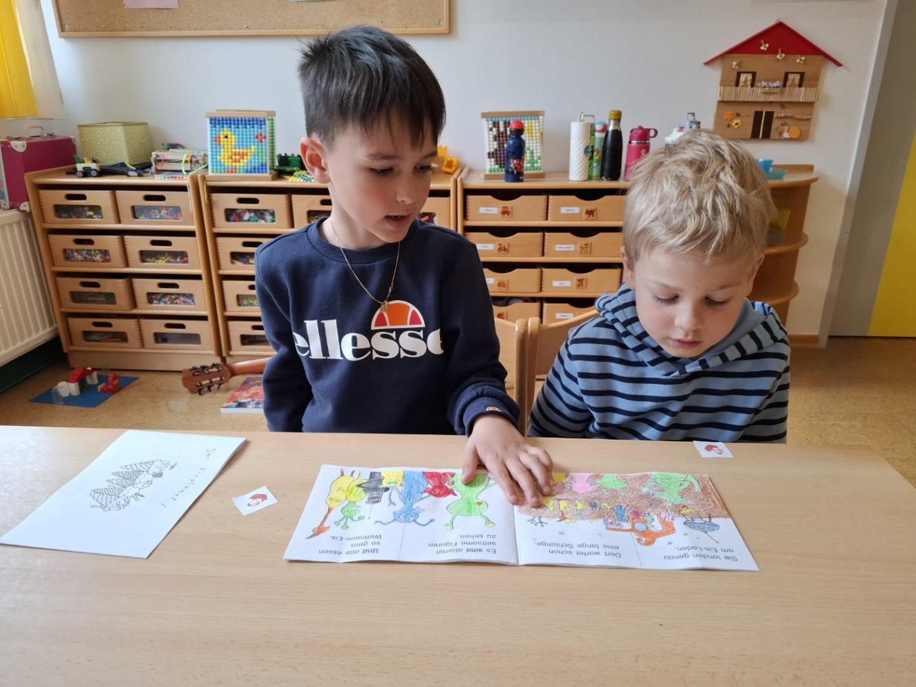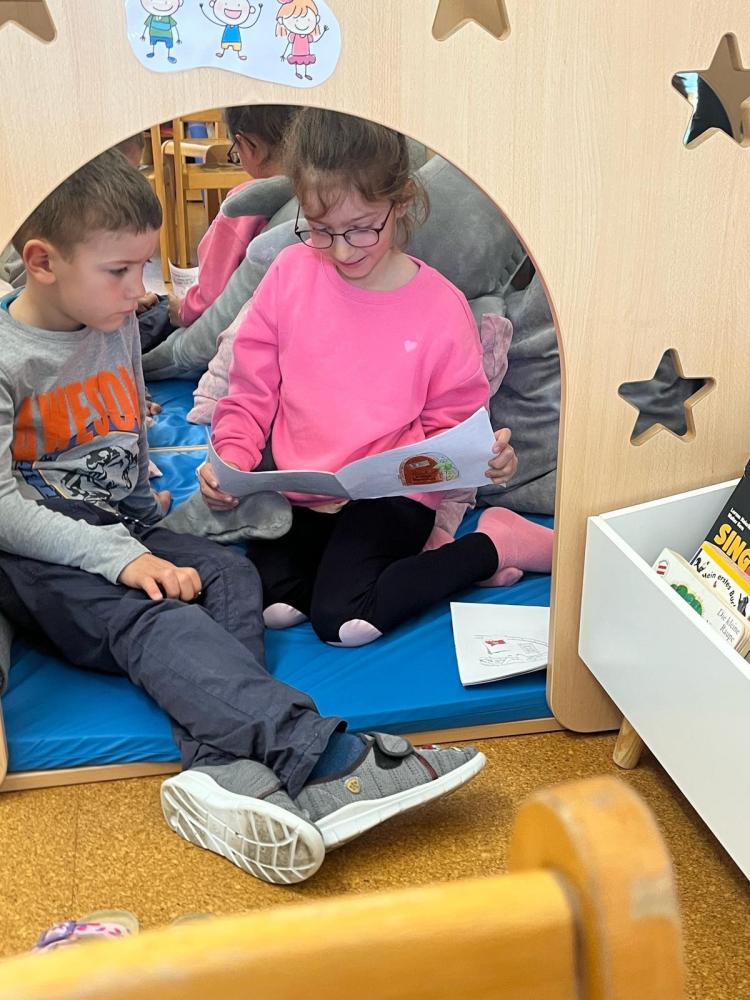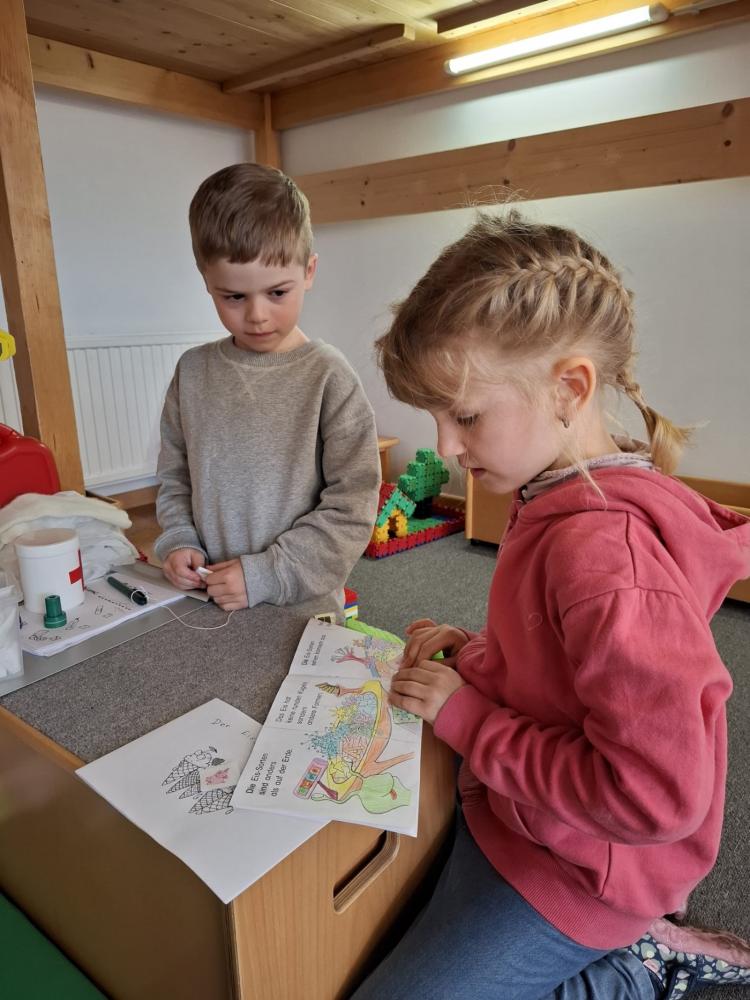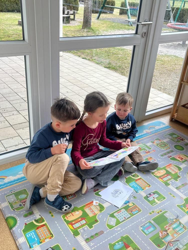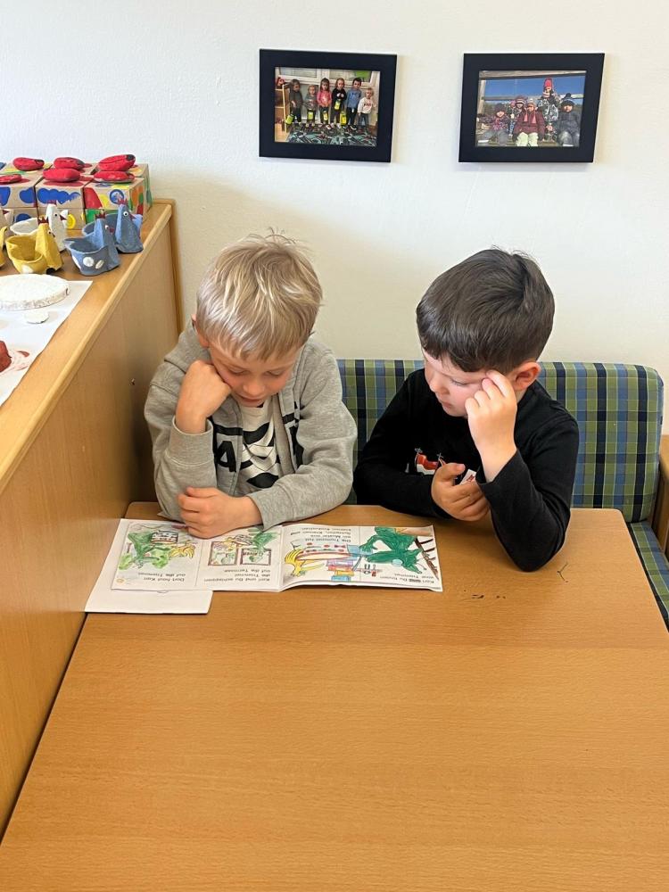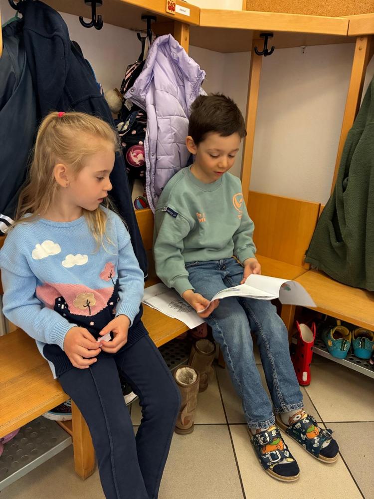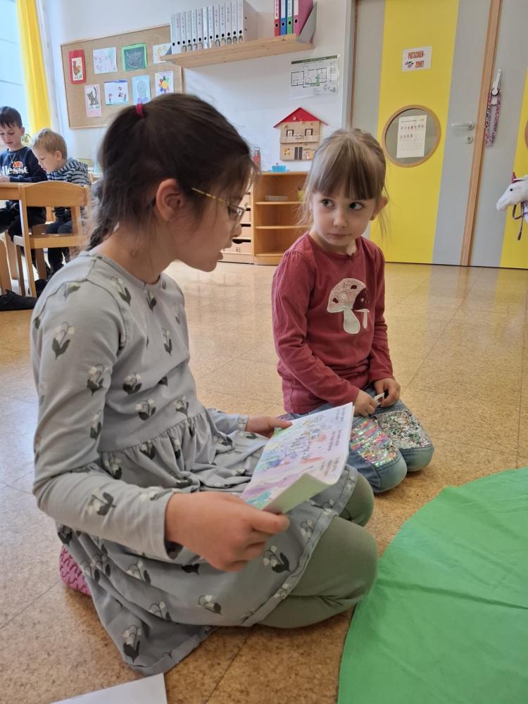 Gemeinsam wurde das Lied „Alle Kinder lernen lesen“ gesungen, und am Ende durfte jedes Kindergartenkind das Büchlein als Geschenk mit nach Hause nehmen. Als Dankeschön erhielten die Volksschulkinder liebevoll gebastelte Lesezeichen und eine süße Überraschung.