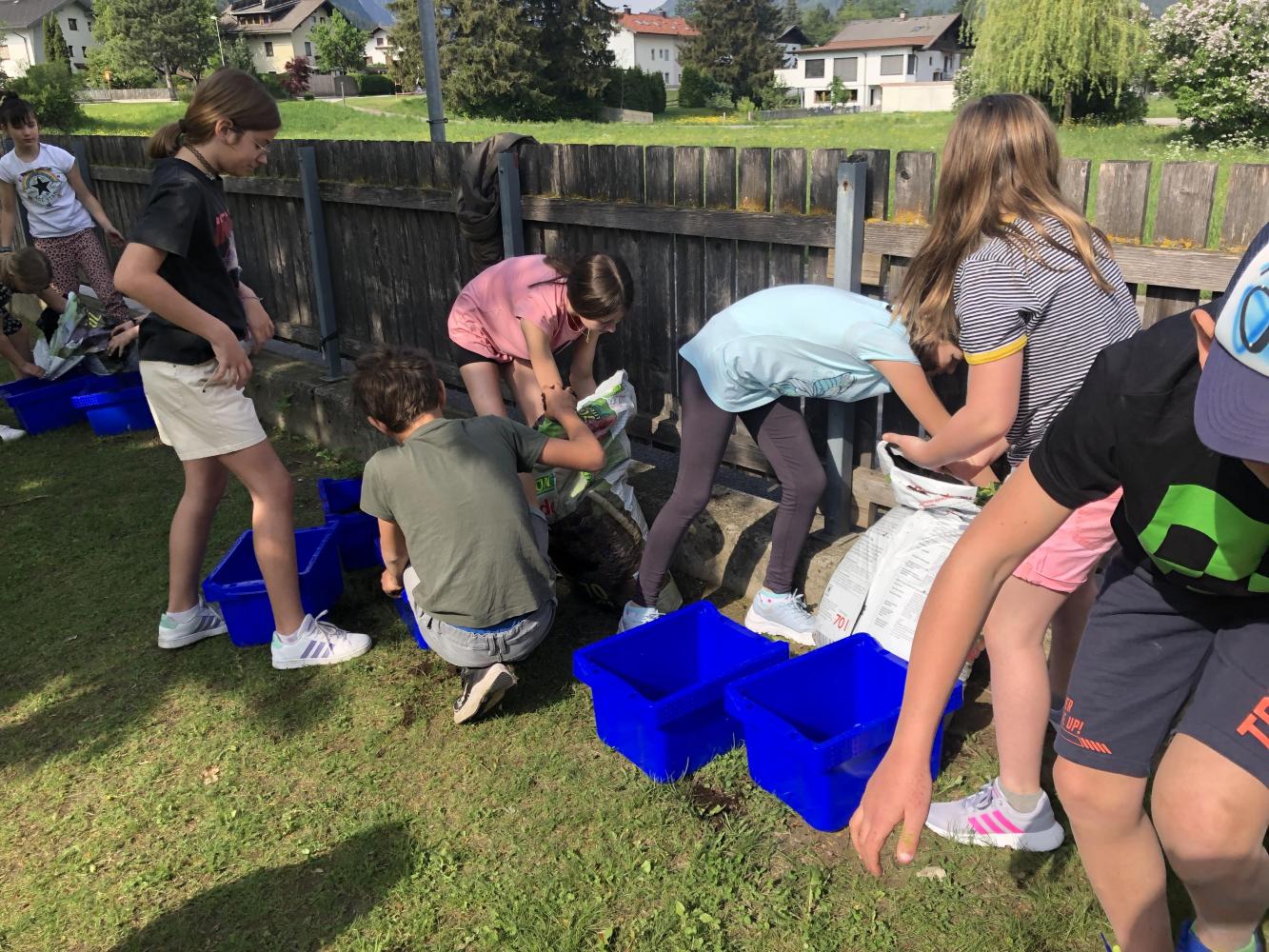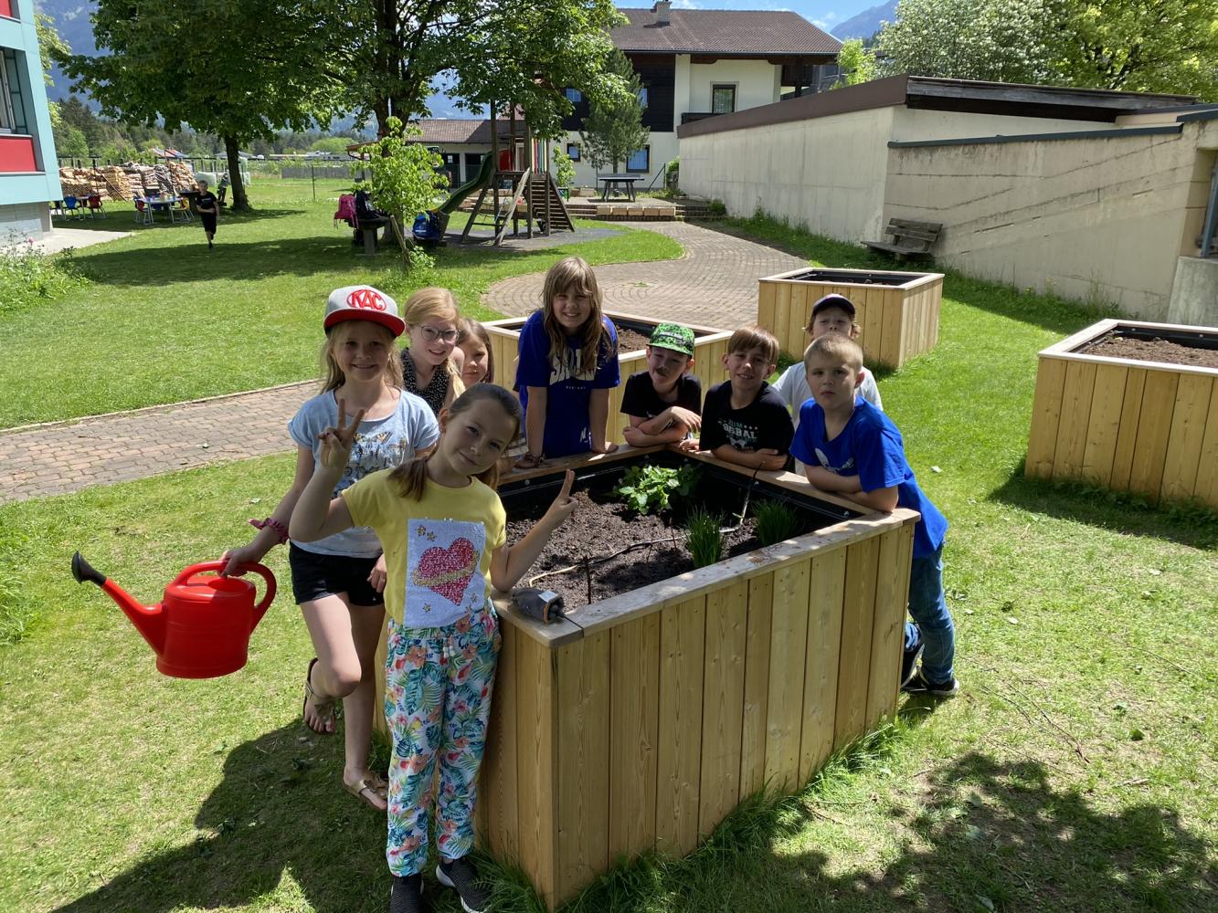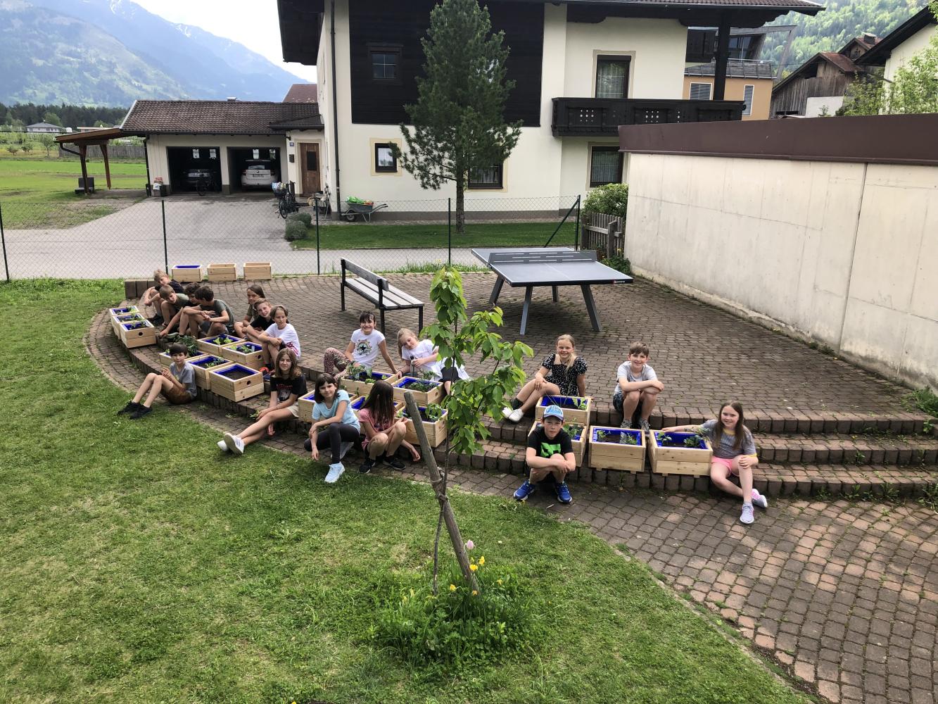 Auch die bereits bestehenden Hochbeete wurden nun mit allerlei bepflanzt. Wir bedanken uns noch einmal bei der Gemeinde und Fabian Kerschbaumer, für deren tolle Unterstützung. Ein großer Dank ergeht auch an die Firma Europlast, die uns noch einmal zehn Kunststoffboxen gratis zur Verfügung gestellt hat!