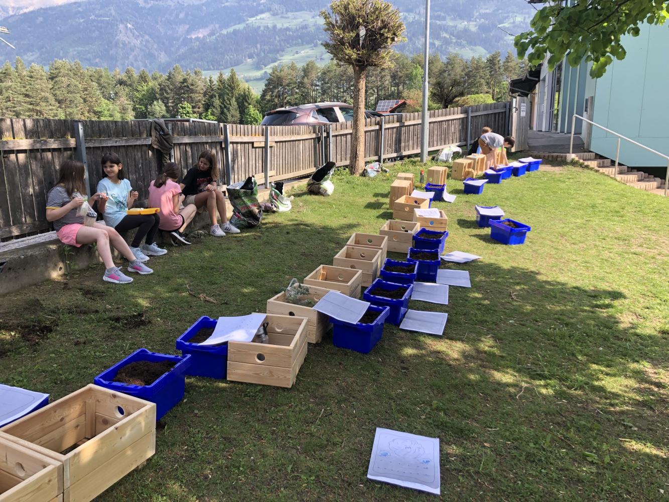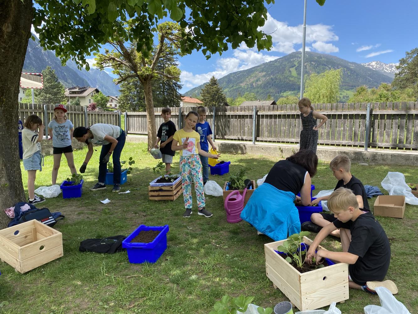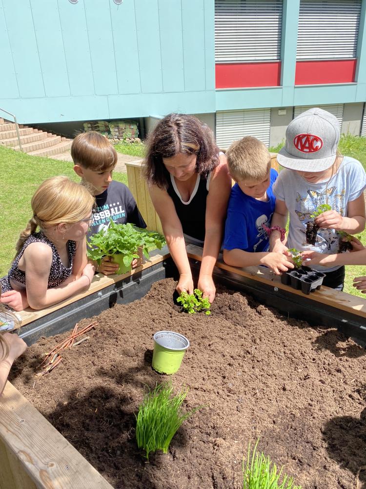 Auch die bereits bestehenden Hochbeete wurden nun mit allerlei bepflanzt. Wir bedanken uns noch einmal bei der Gemeinde und Fabian Kerschbaumer, für deren tolle Unterstützung. Ein großer Dank ergeht auch an die Firma Europlast, die uns noch einmal zehn Kunststoffboxen gratis zur Verfügung gestellt hat!