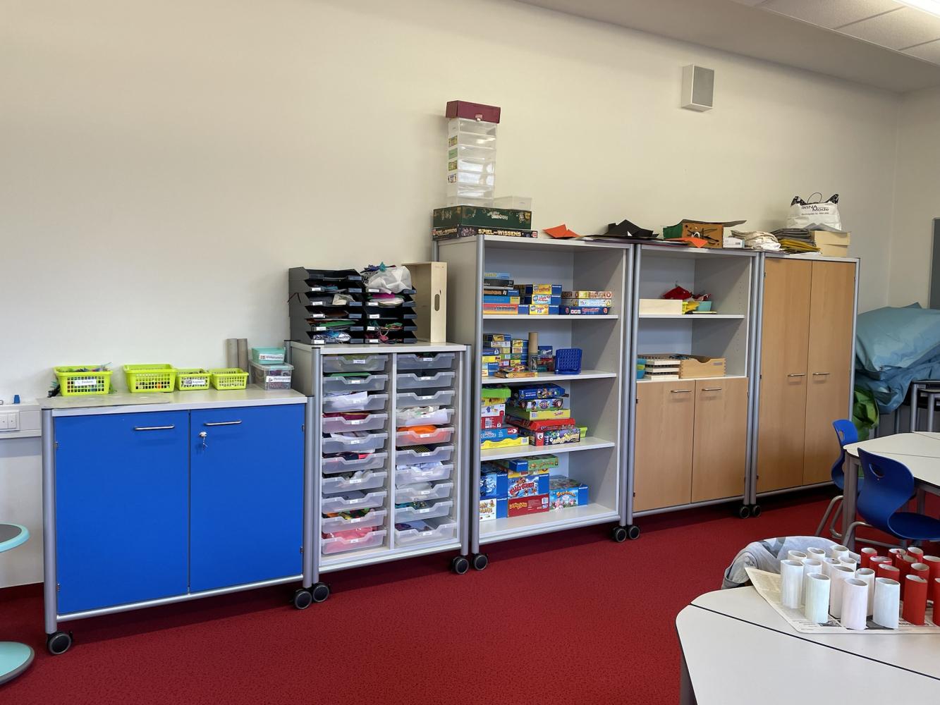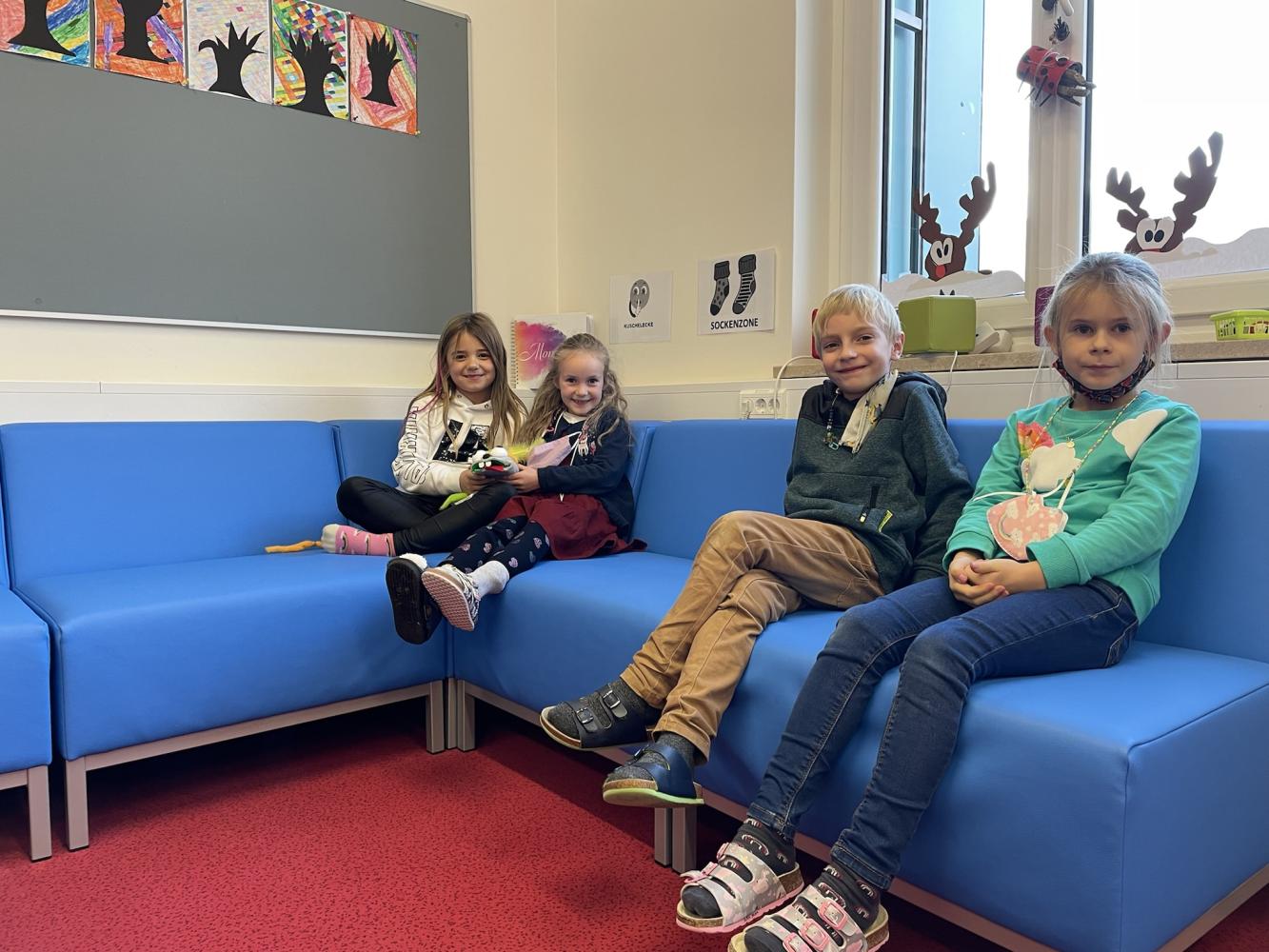Die Schulische Tagesbetreuung wurde in einen größeren Raum übersiedelt und mit neuen Möbeln ausgestattet, wodurch nun für jedes Kind ausreichend Platz für deren kreative Entfaltung zur Verfügung steht. Neue Tonieboxen laden die Kinder besonders nach der Gegenstandsbezogenen Lernzeit zum Abschalten und „Chillen“ auf der Couch ein.