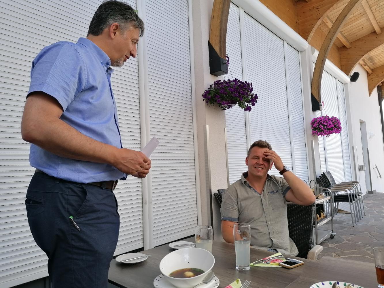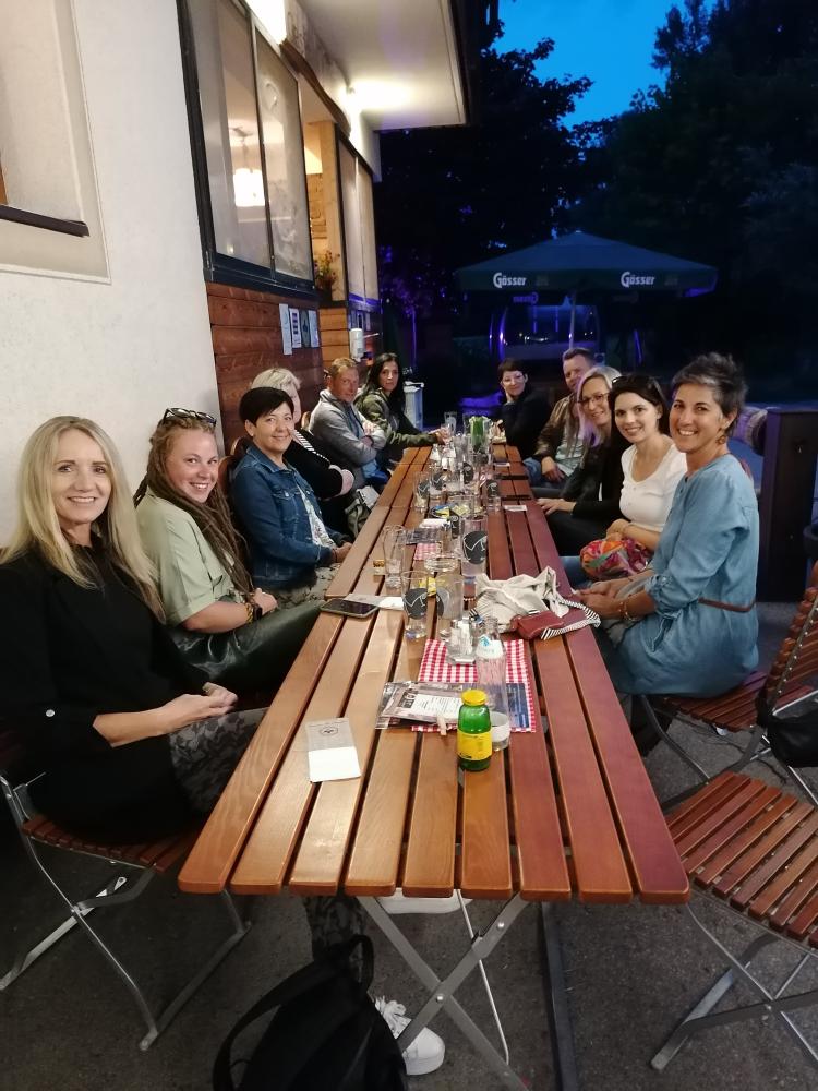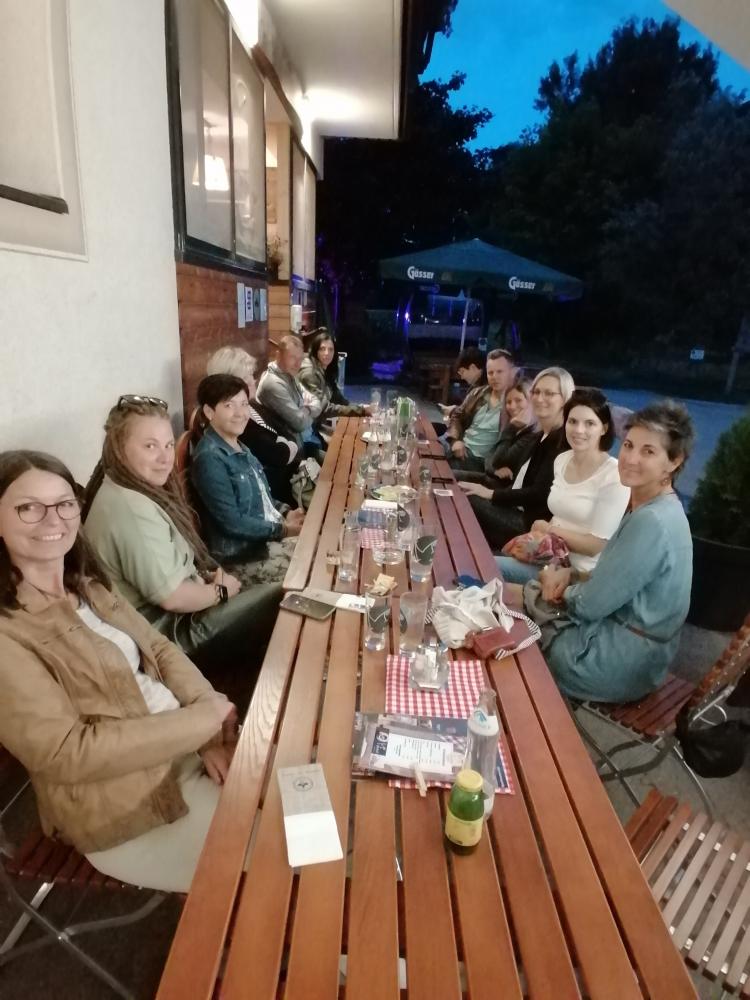 -Wir haben einen schönen Abend im Kreis der KollegInnen verbracht.