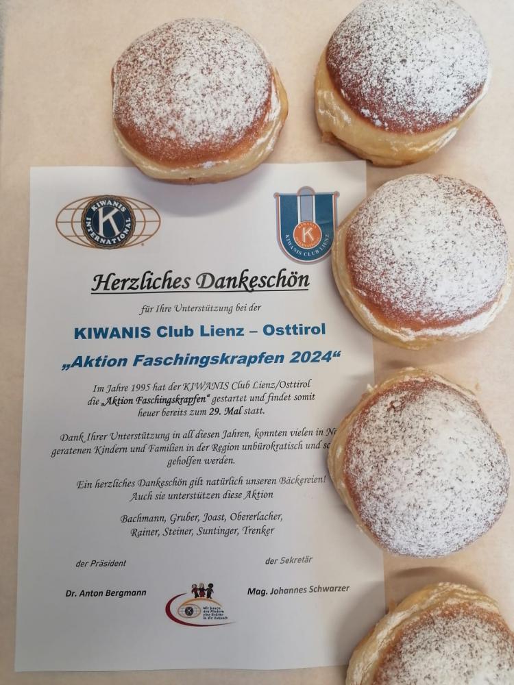 🤡 Unsinniger Donnerstag 🤡 von Norbert Salcher 09. Februar 2024 Fasching Herzlichen Dank an den Kiwanis Club Lienz und Herrn Martin Zimmermann für die Krapfenspende!!!