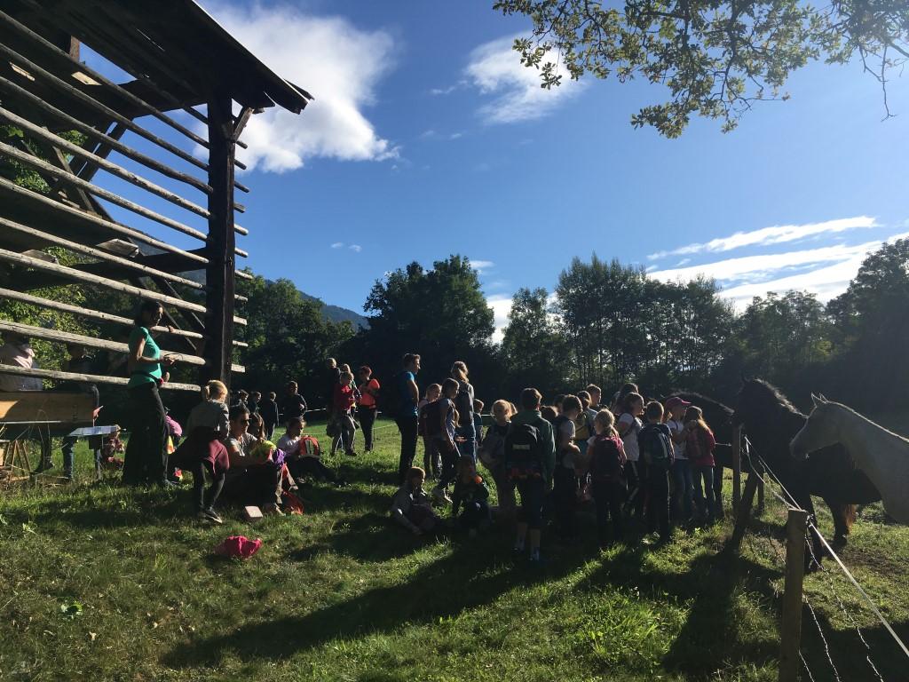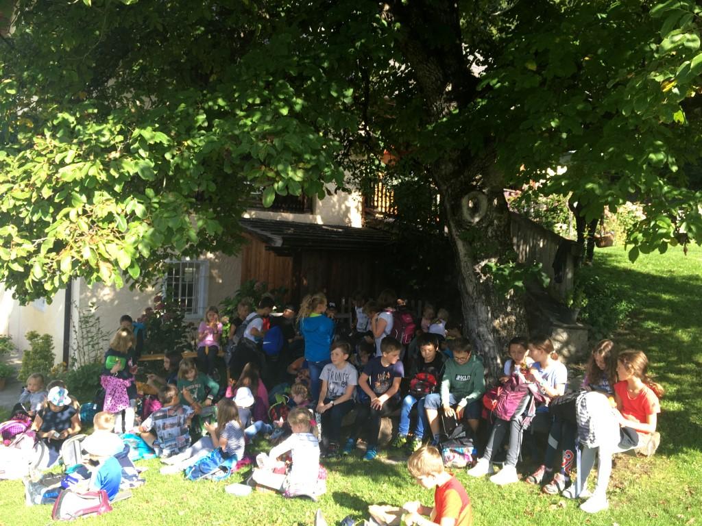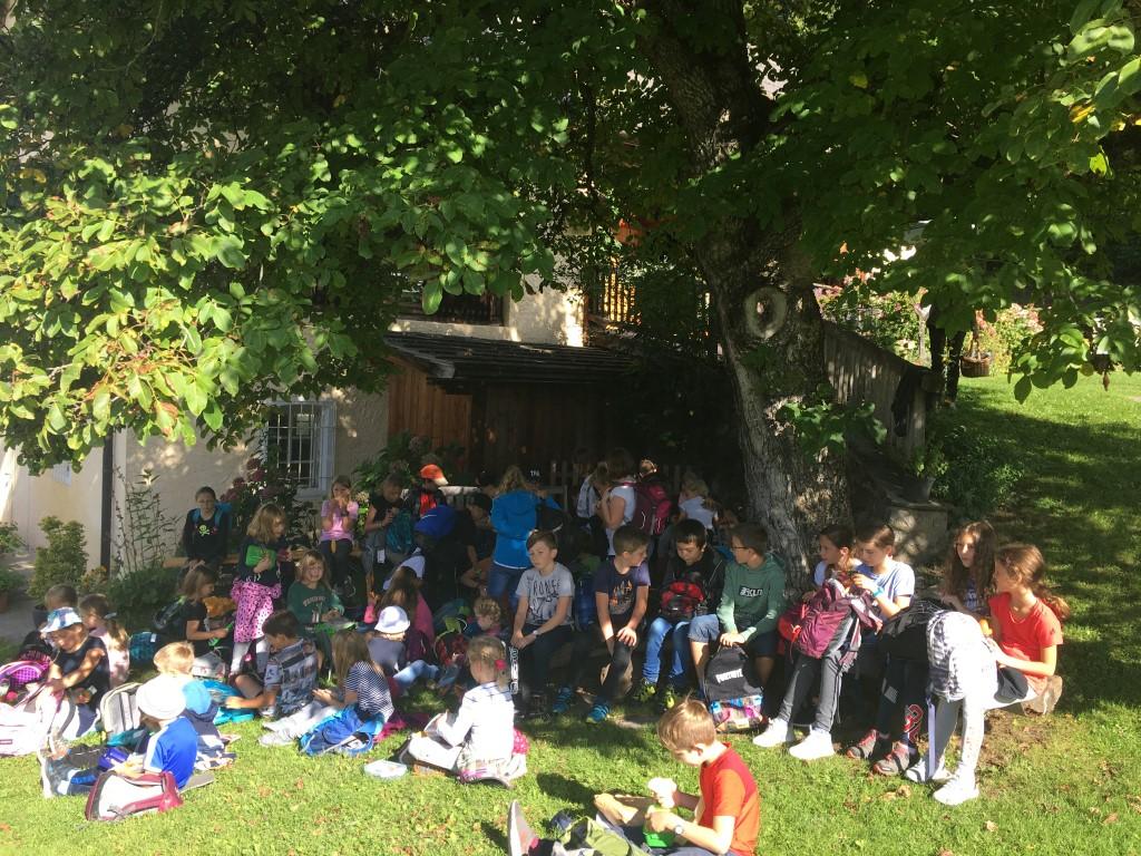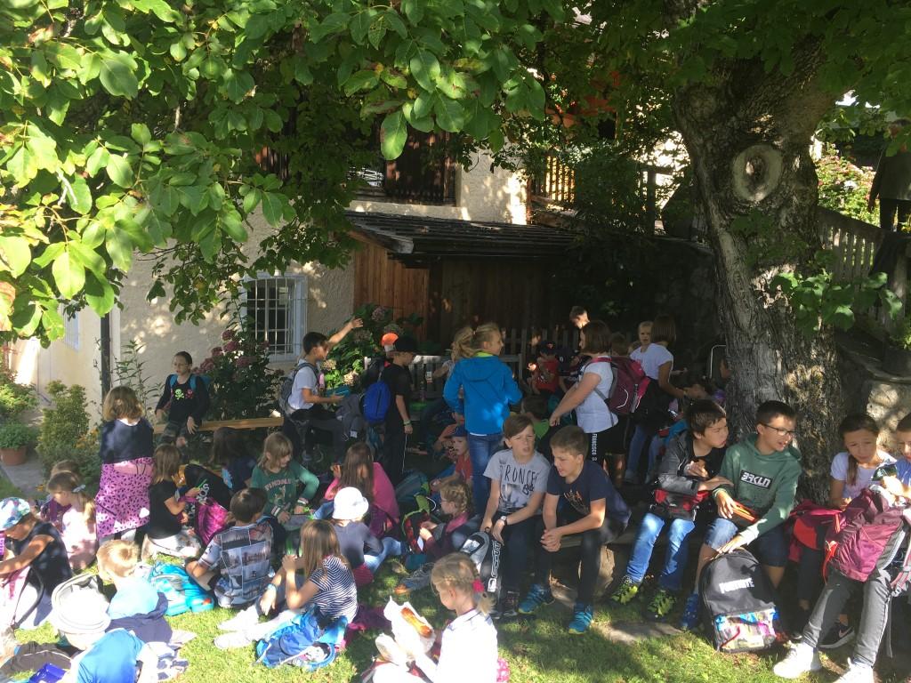 Beim Herbstwandertag hat die ganze Schule heuer das Kräuterdorf in Irschen besucht.